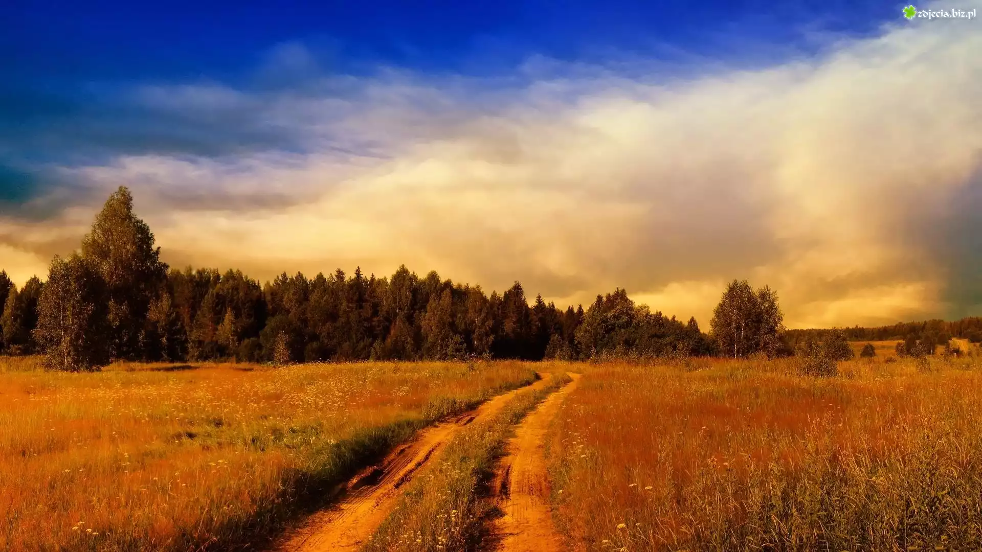 Zdjęcie Łąki, Droga, Las, Chmury