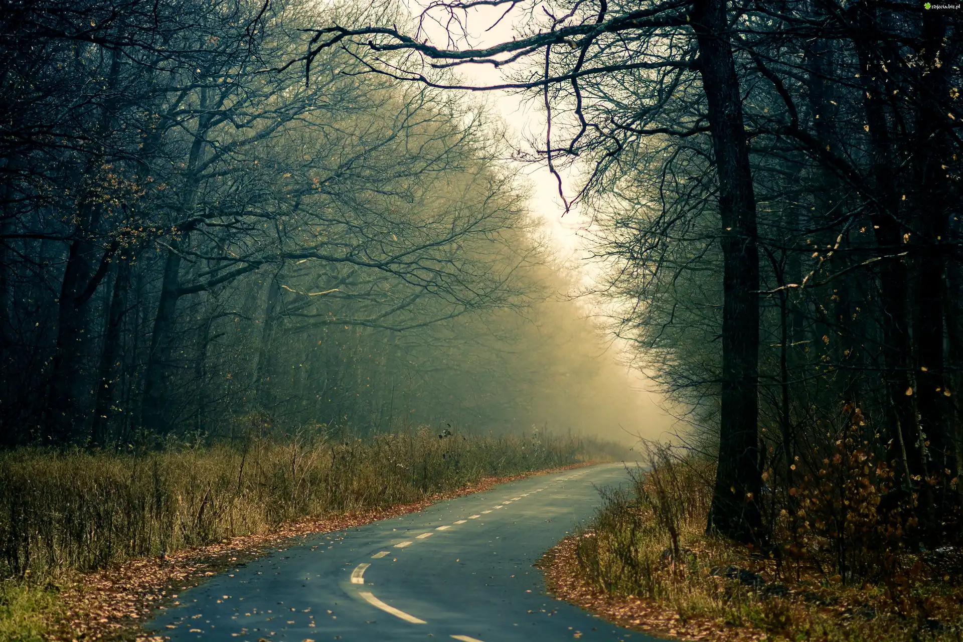 Zdjęcie, Droga, Las, Mgła