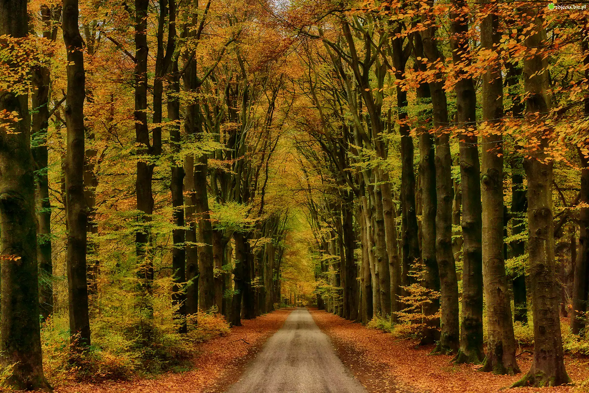 Zdjęcie Las, Droga, Drzewa, Jesień