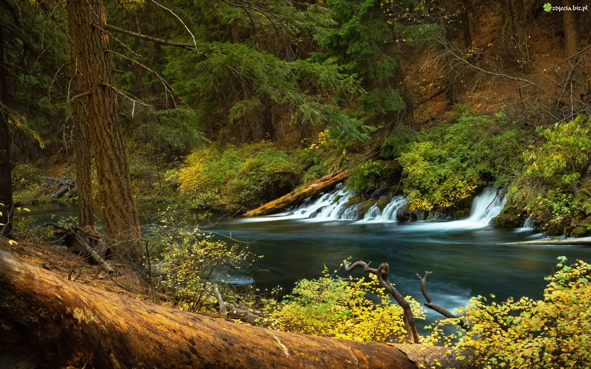 Zdjęcie Rzeka, Las, Drzewa, Gałęzie, Jesień