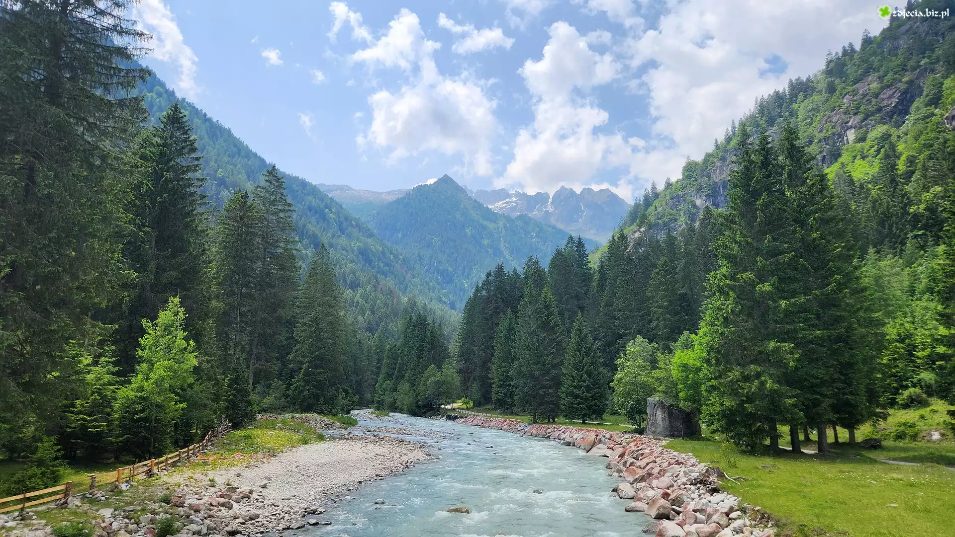 Zdjęcie Góry, Rzeka, Kamienie, Las, Zielone, Drzewa