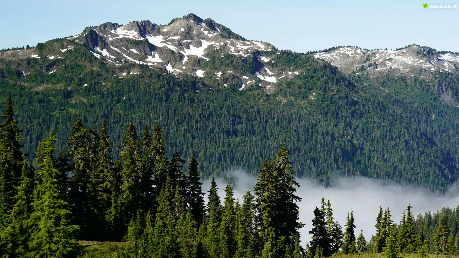 Zdjęcie Góry, Las, Drzewa, Świerki, Mgła