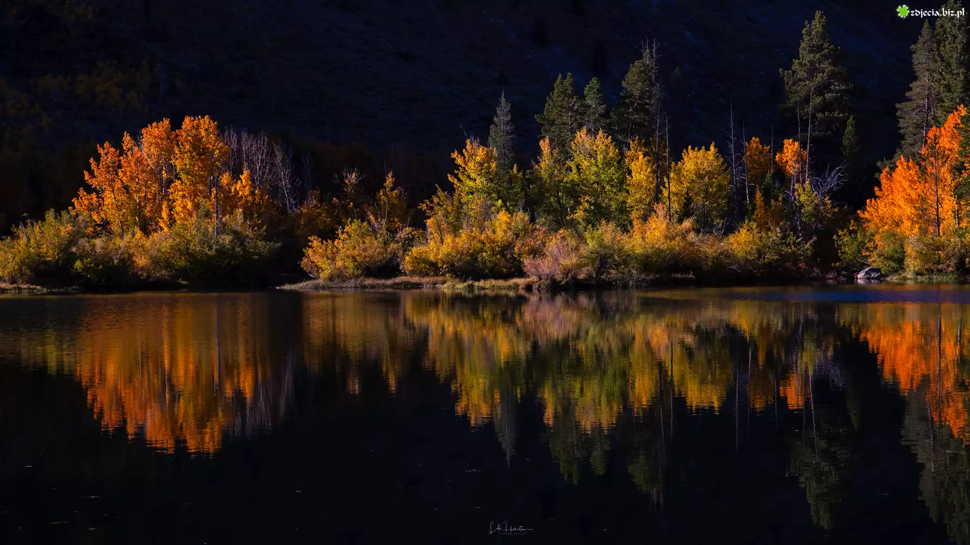 Zdjęcie Jezioro, Las, Drzewa, Jesień, Odbicie