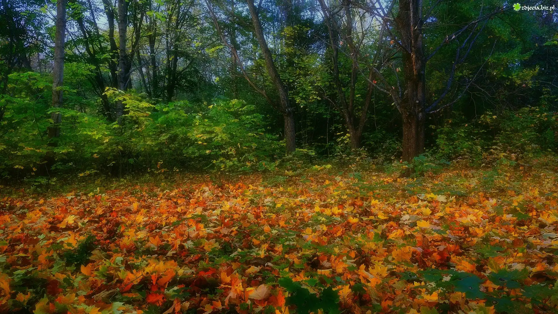 Zdjęcie Las, Kolorowe, Opadłe, Liście, Drzewa, Krzewy