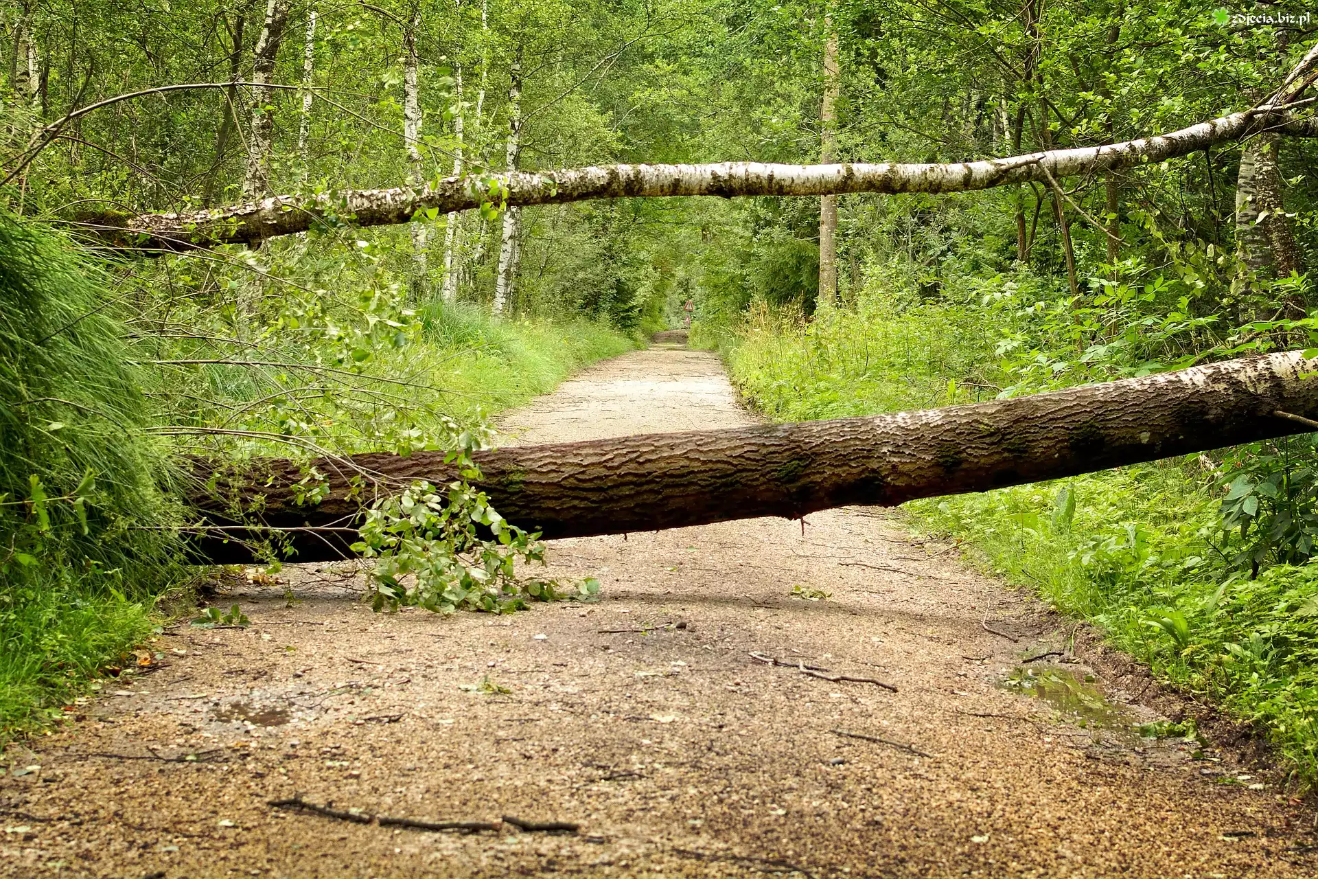 Zdjęcie Las, Droga, Powalone, Drzewa, Brzozy