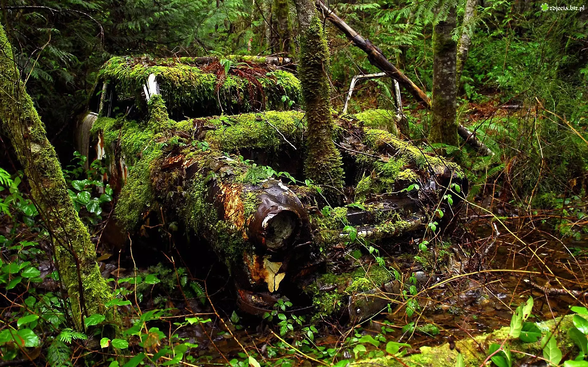 Zdjęcie Las, Zabytkowy, Samochód, Rośliny, Drzewa, Mech