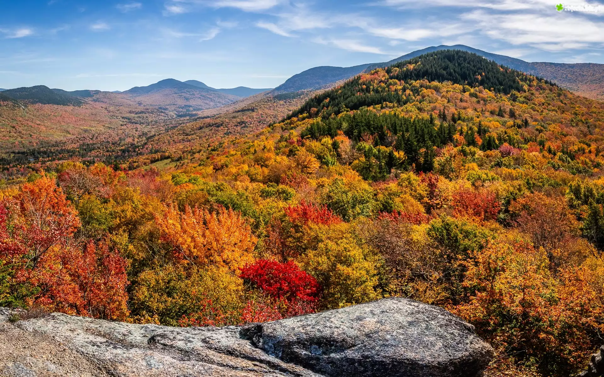 Zdjęcie Góry, Las, Drzewa, Jesień, Skała