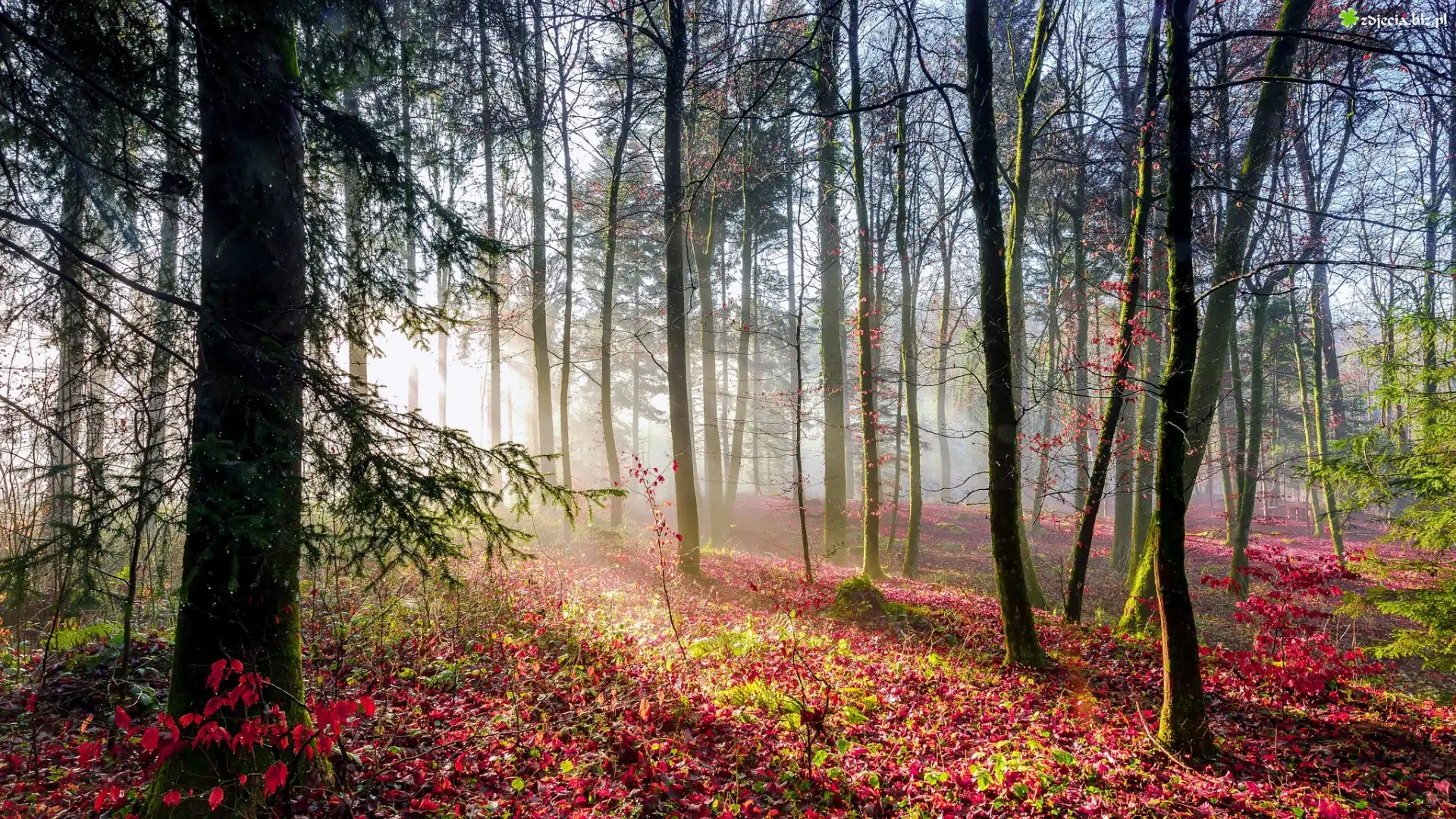 Zdjęcie Las, Przebijające światło, Drzewa, Liście