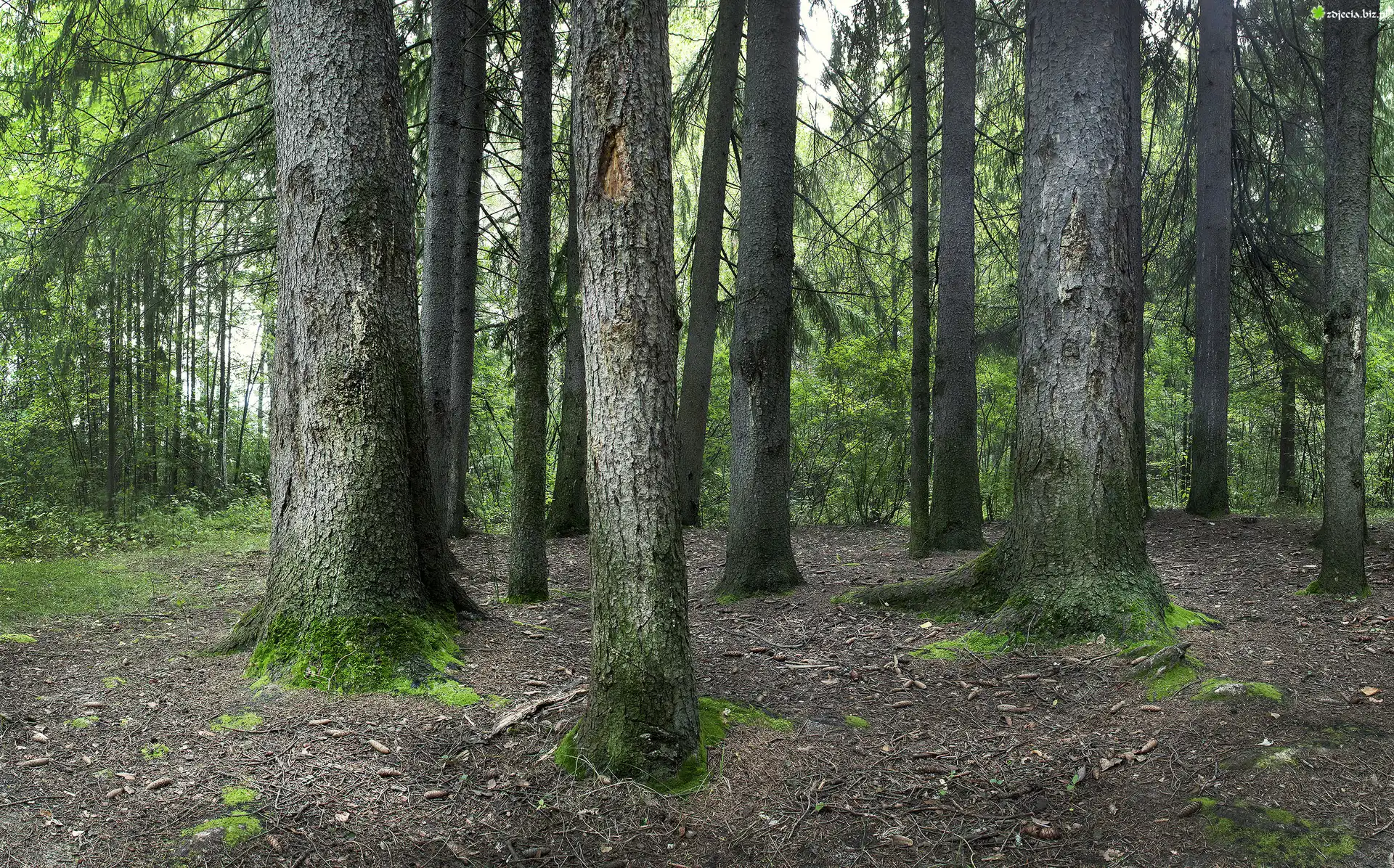 Zdjęcie Las, Zielone, Drzewa, Pnie