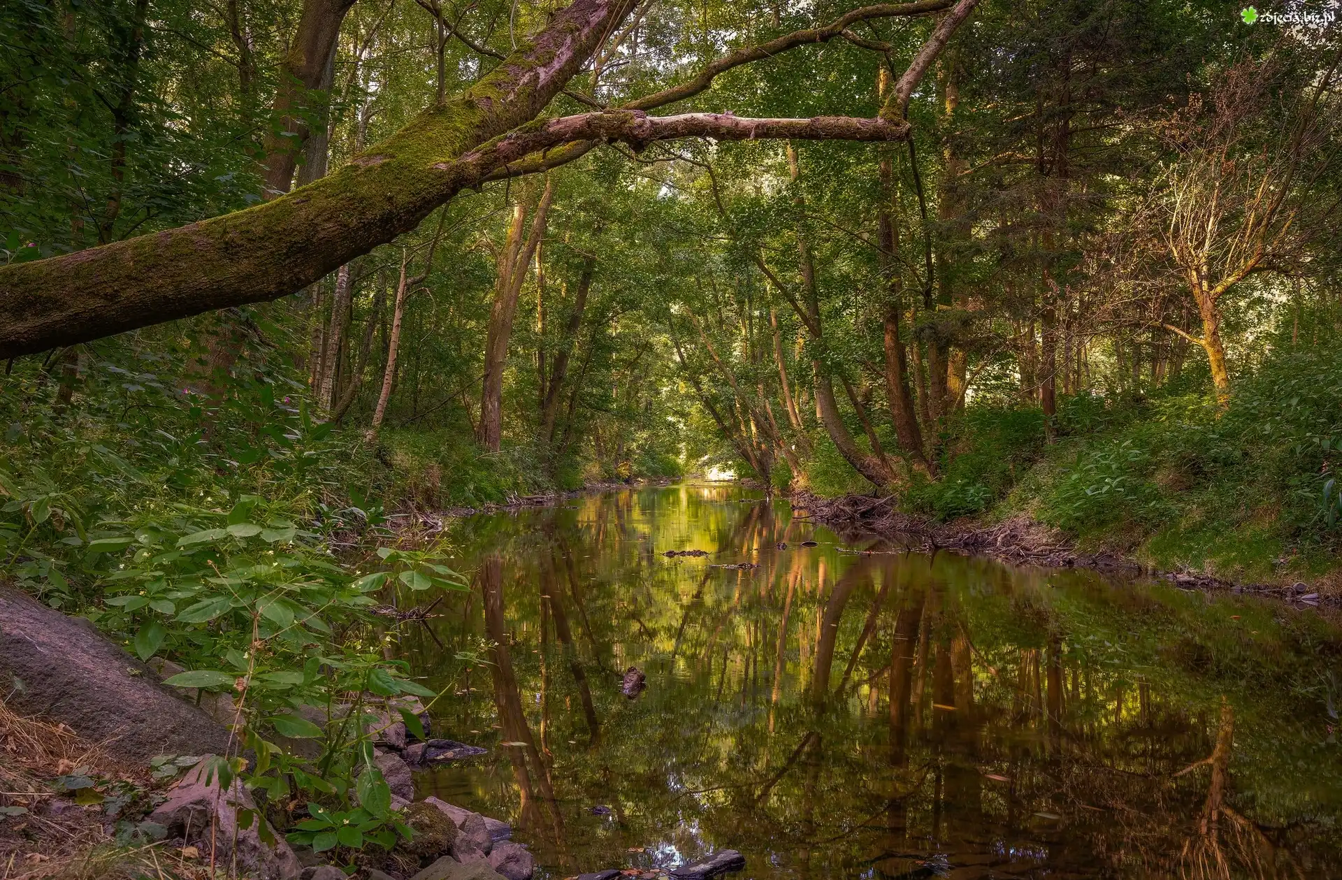 Zdjęcie Las, Rzeka, Skarpy, Pochylone, Drzewo, Rośliny