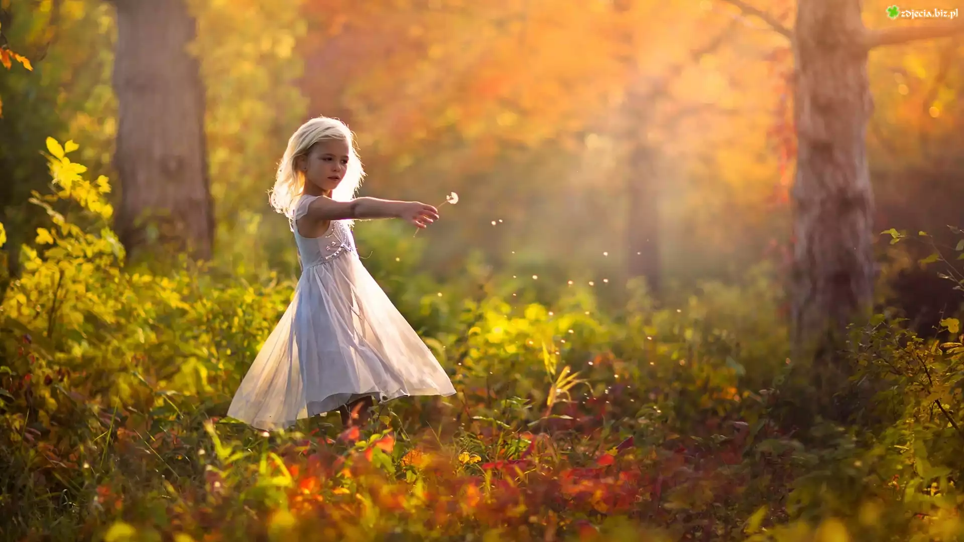 Zdjęcie Dziewczynka, Las, Dmuchawiec