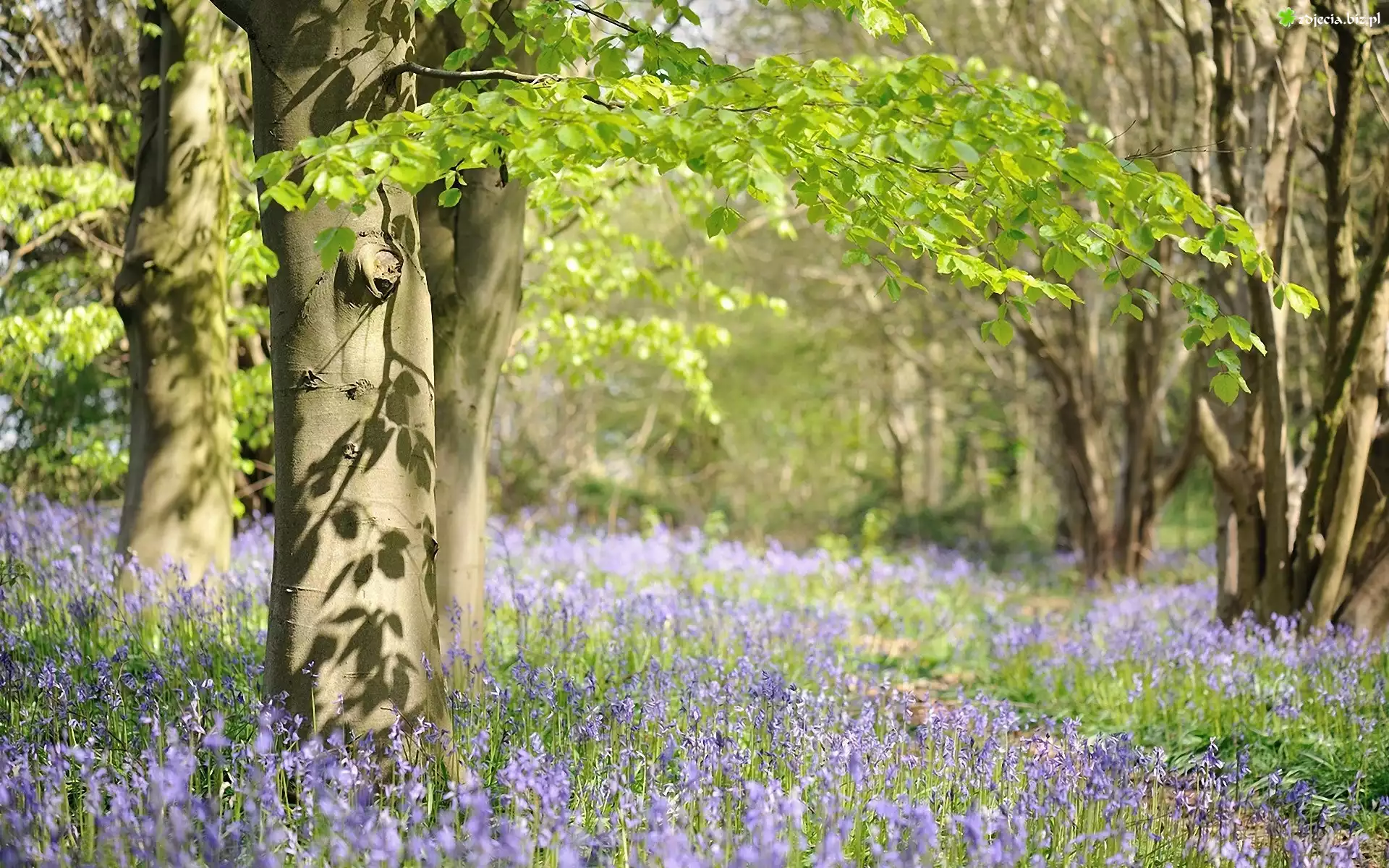 Zdjęcie Las, Drzewa, Fioletowe, Kwiaty