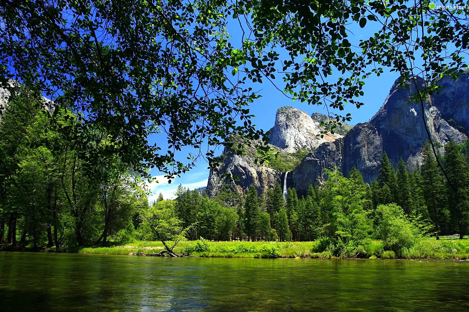 Zdjęcie Stany Zjednoczone, Stan Kalifornia, Park Narodowy Yosemite, Góry, Las, Rzeka