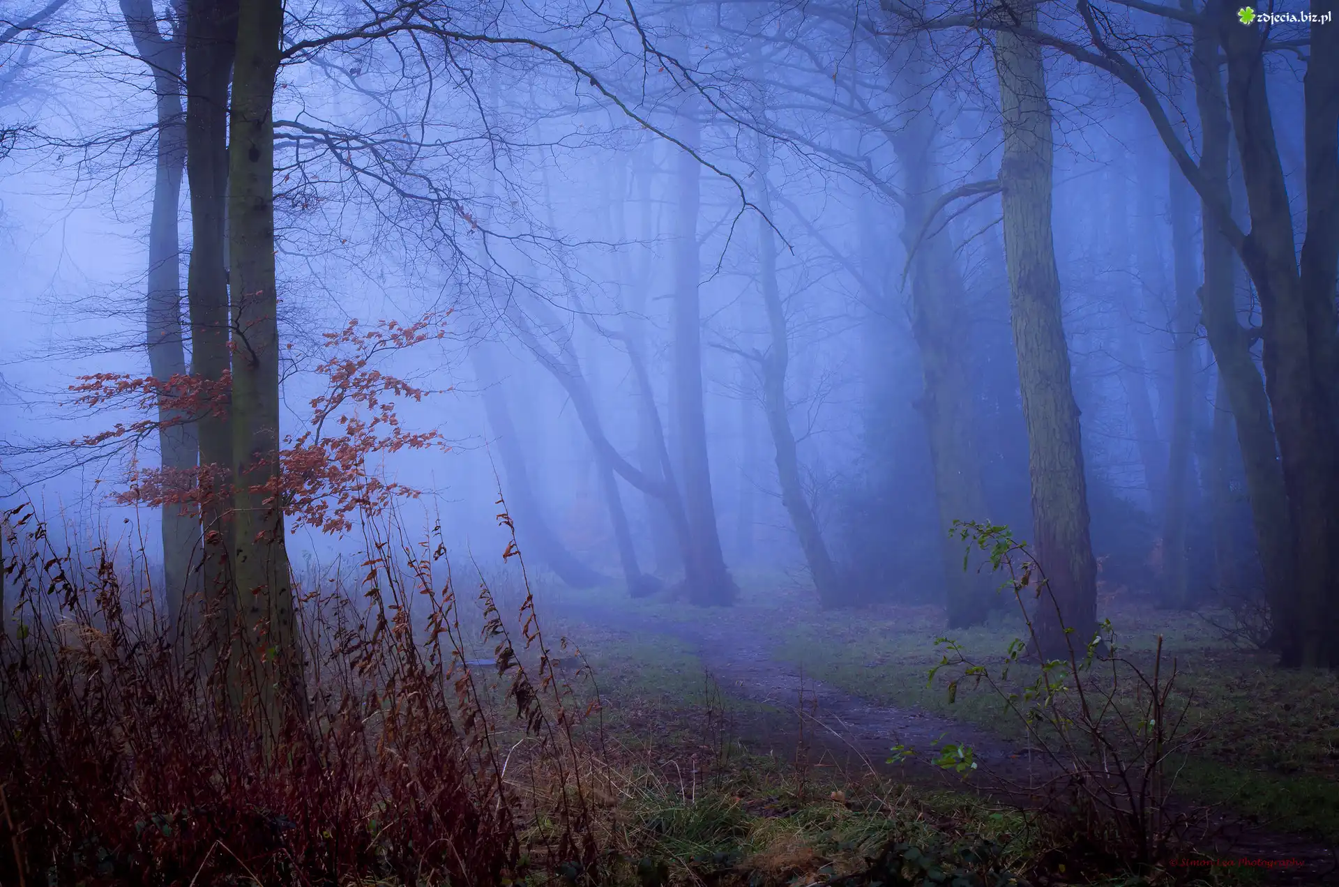 Zdjęcie Las, Mgła, Jesień, Drzewa