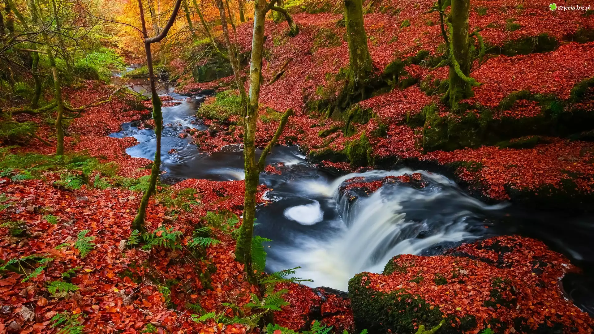 Zdjęcie Las, Rzeka, Jesień, Liście