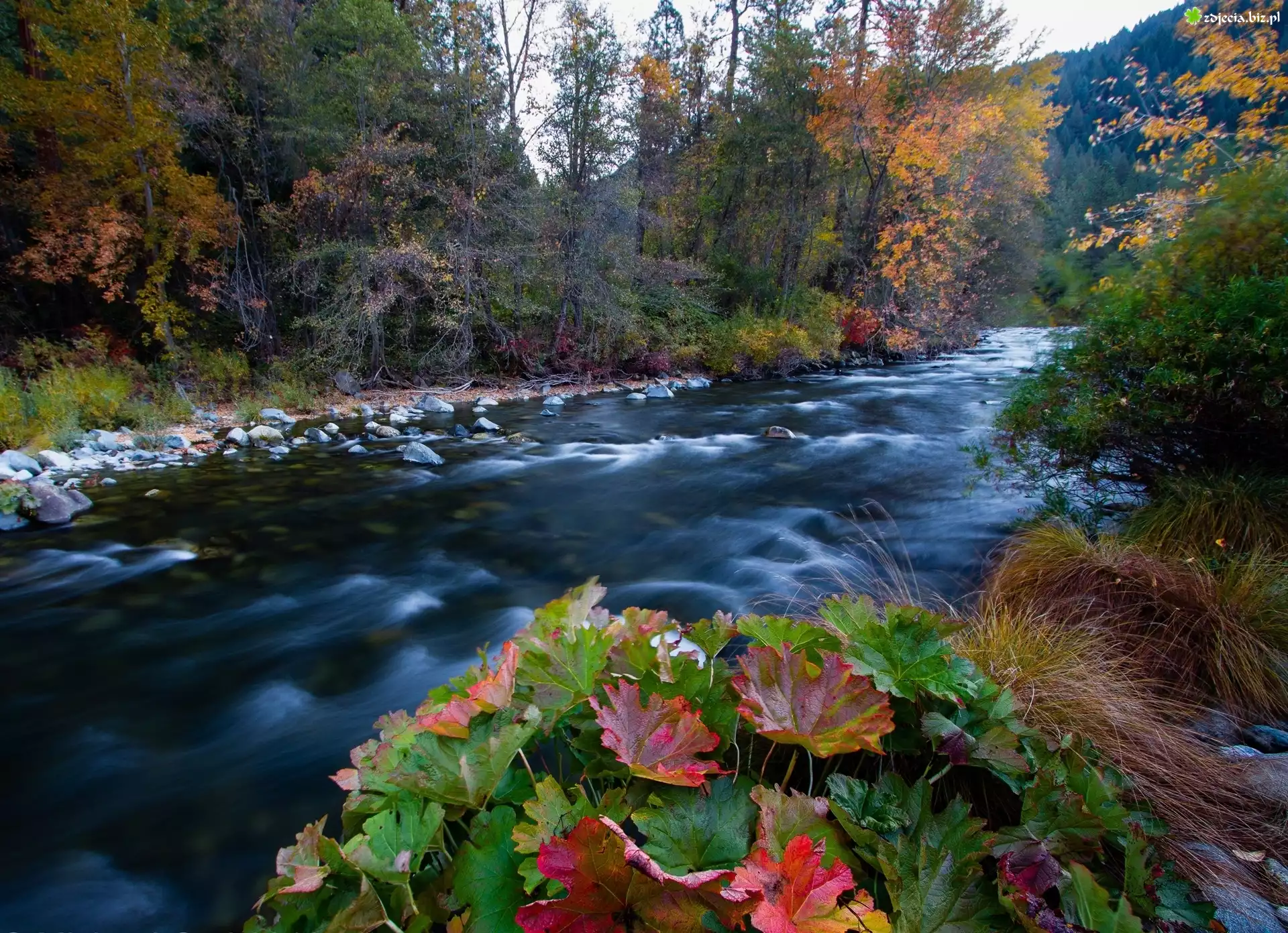 Zdjęcie Las, Rzeka, Jesień, Rośliny