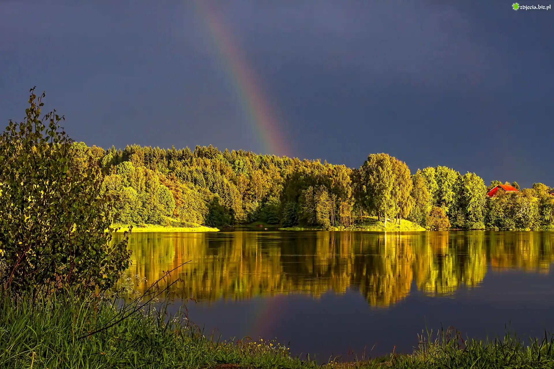 Zdjęcie Jezioro, Las, Tęcza