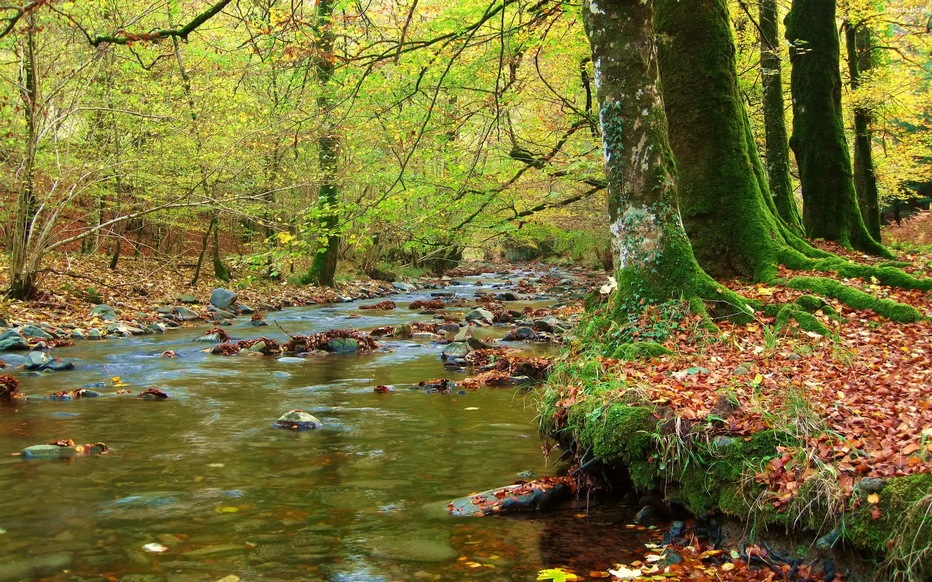 Zdjęcie Las, Rzeczka, Kamienie, Drzewa