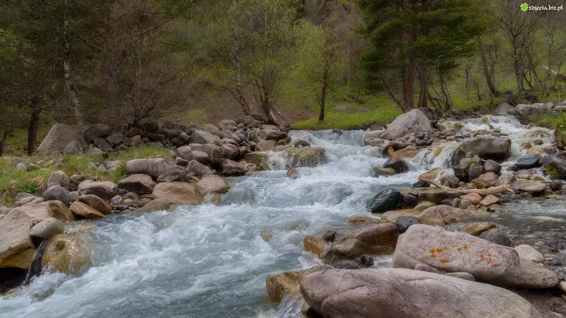 Zdjęcie Las, Rzeka, Strumień, Kamienie, Drzewa
