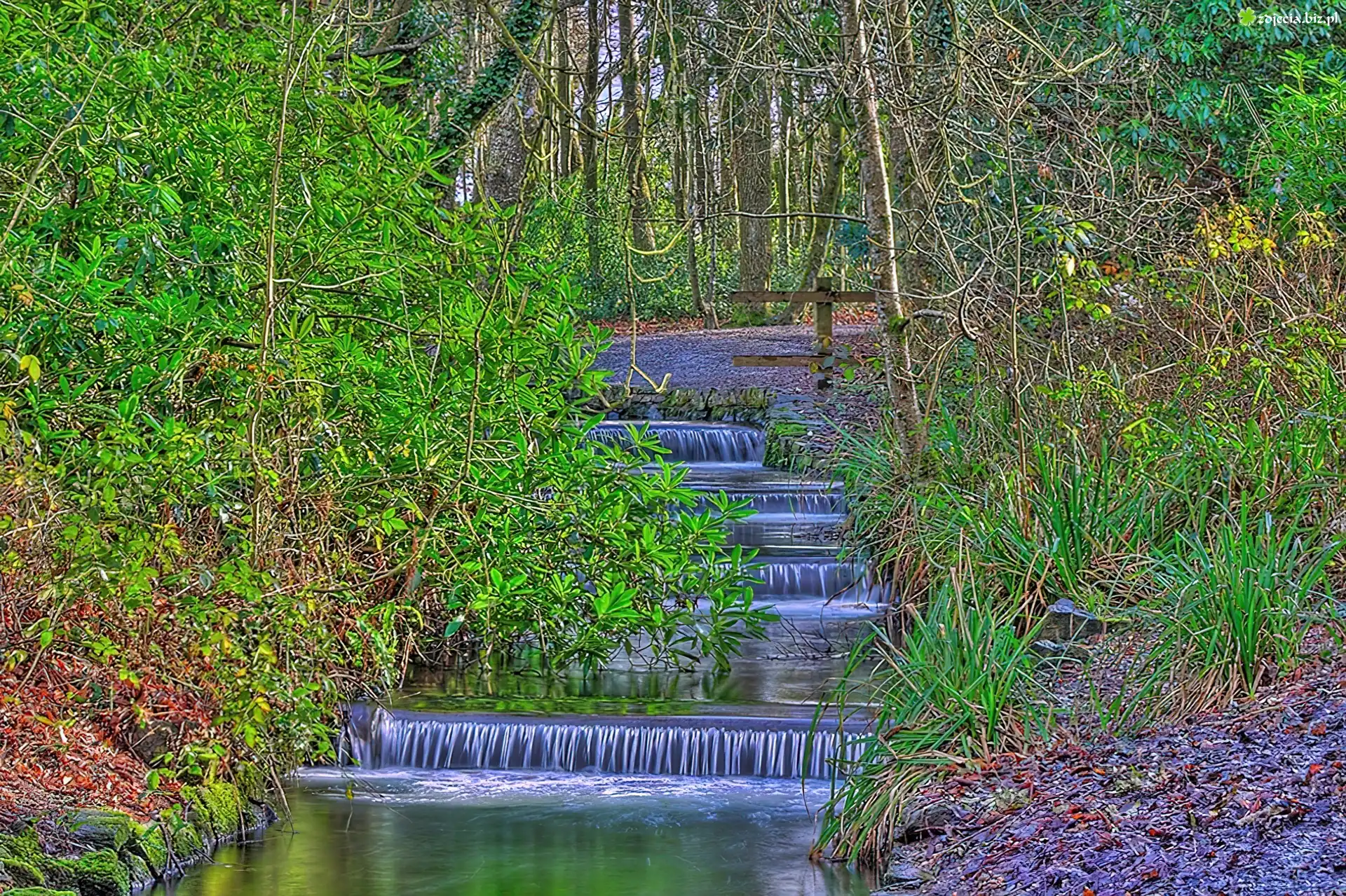 Zdjęcie Kaskada, Las, Krzewy
