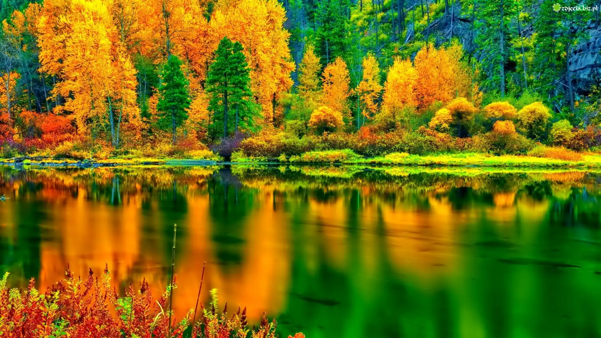 Zdjęcie Las, Jezioro, Kolorowe, Liście