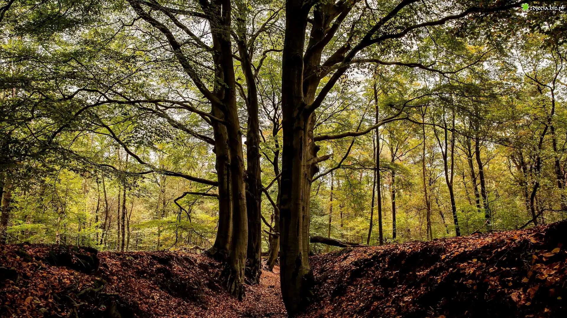 Zdjęcie Las, Drzewa, Liście, Opadłe