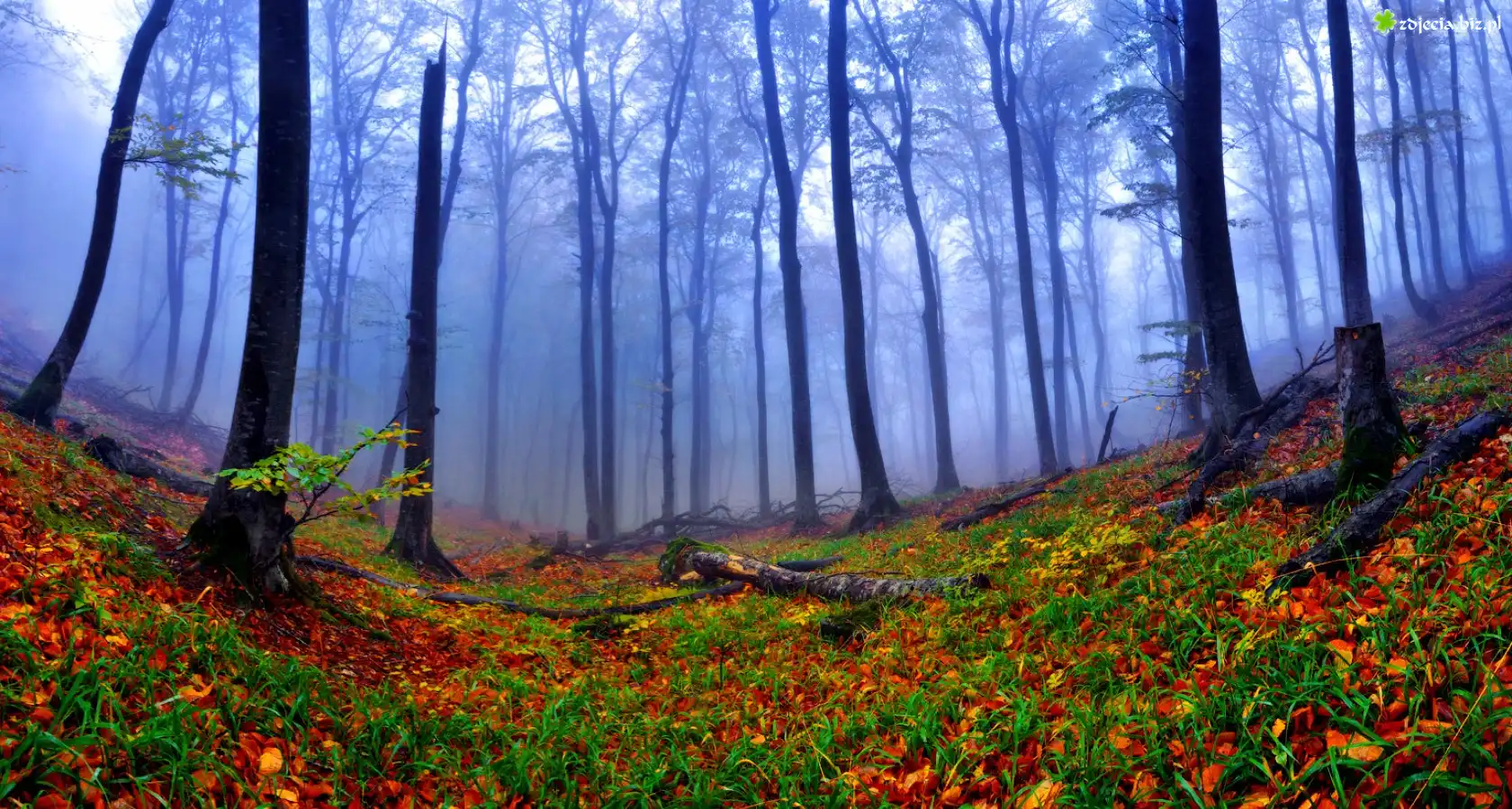 Zdjęcie Las, Jesienne, Liście, Mgła