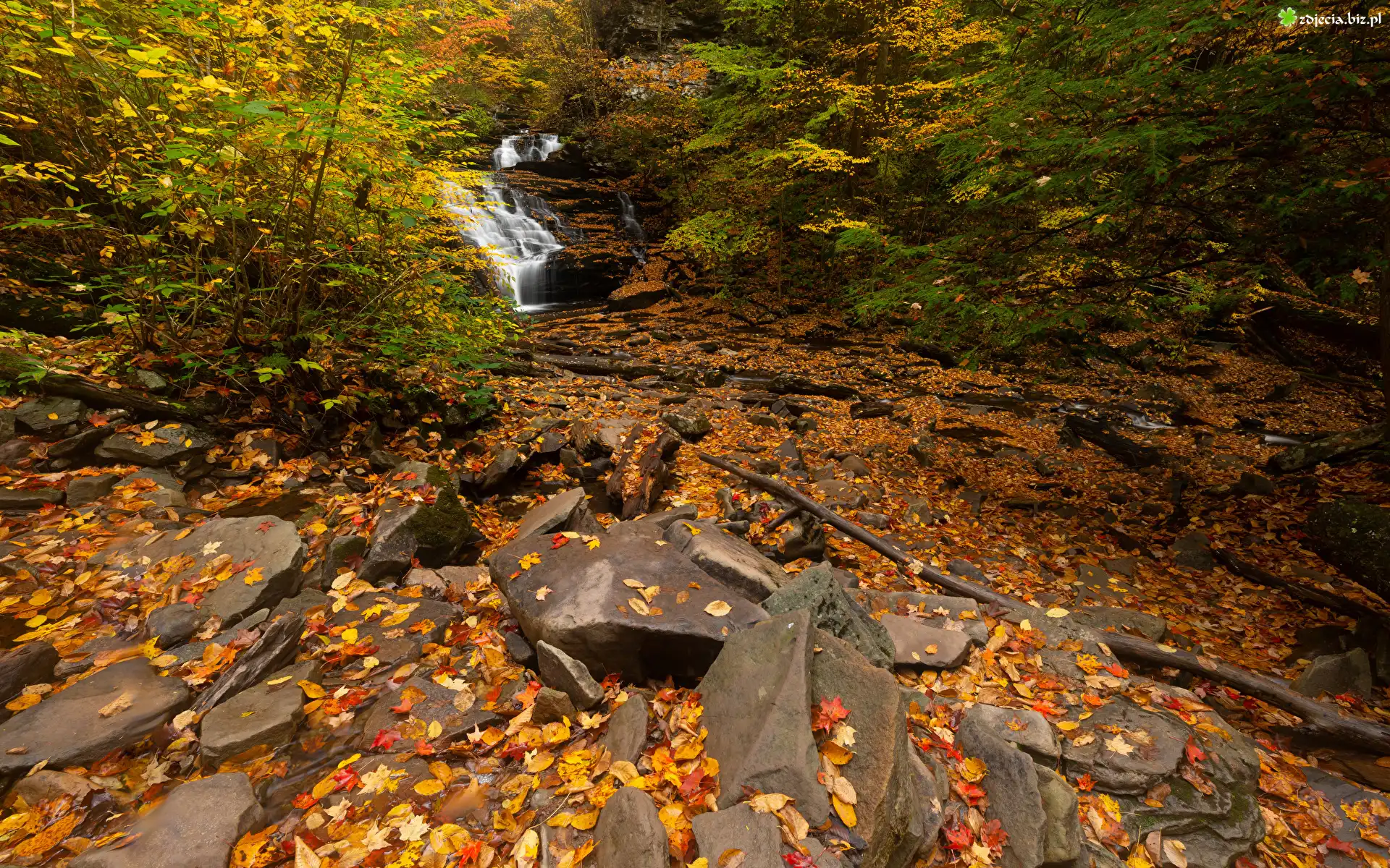 Zdjęcie Las, Jesień, Kamienie, Potok, Liście, Drzewa