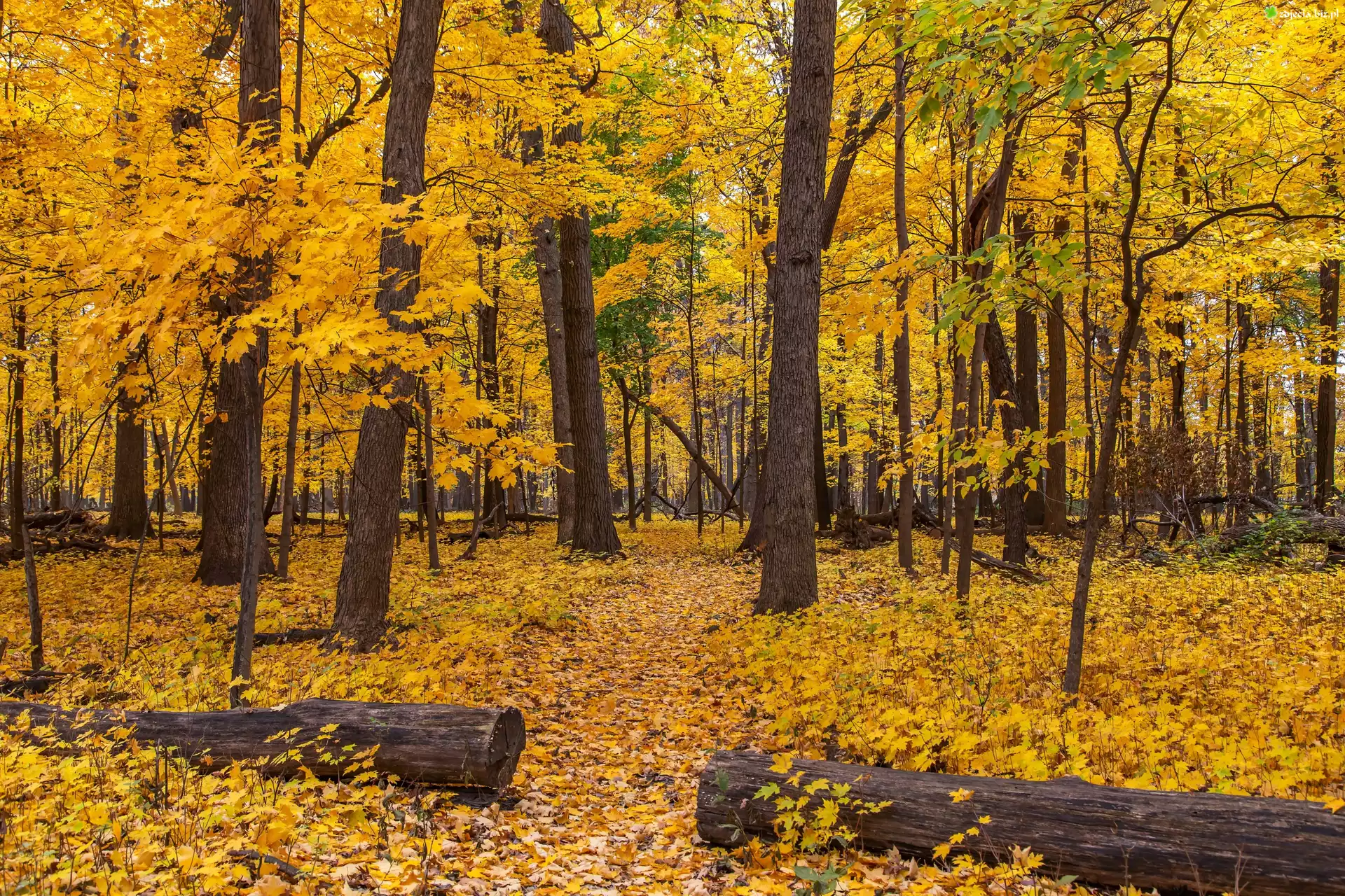 Zdjęcie Las, Drzewa, Pożółkłe, Liście, Jesień