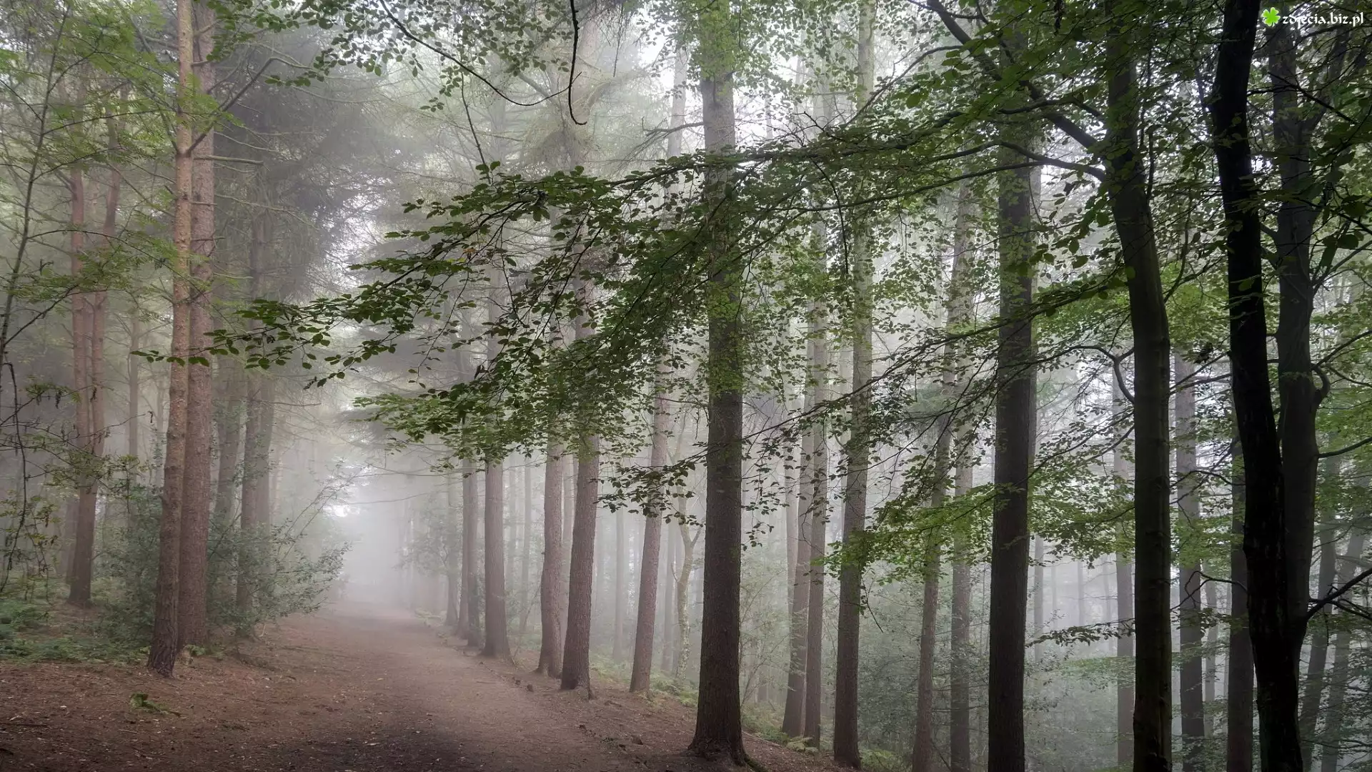 Zdjęcie Las, Drzewa, Mgła, Droga