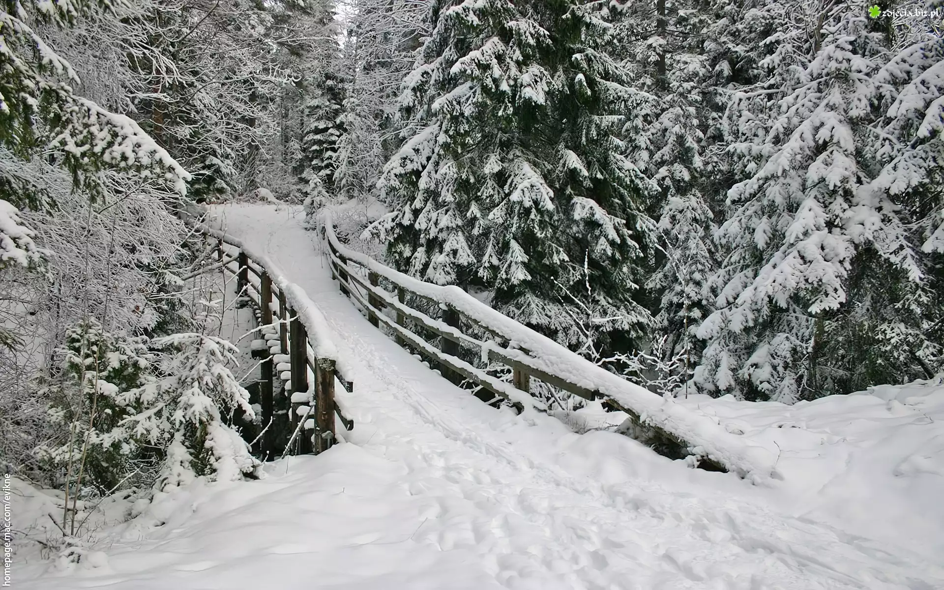 Zdjęcie Las, Rzeka, Most, Zima