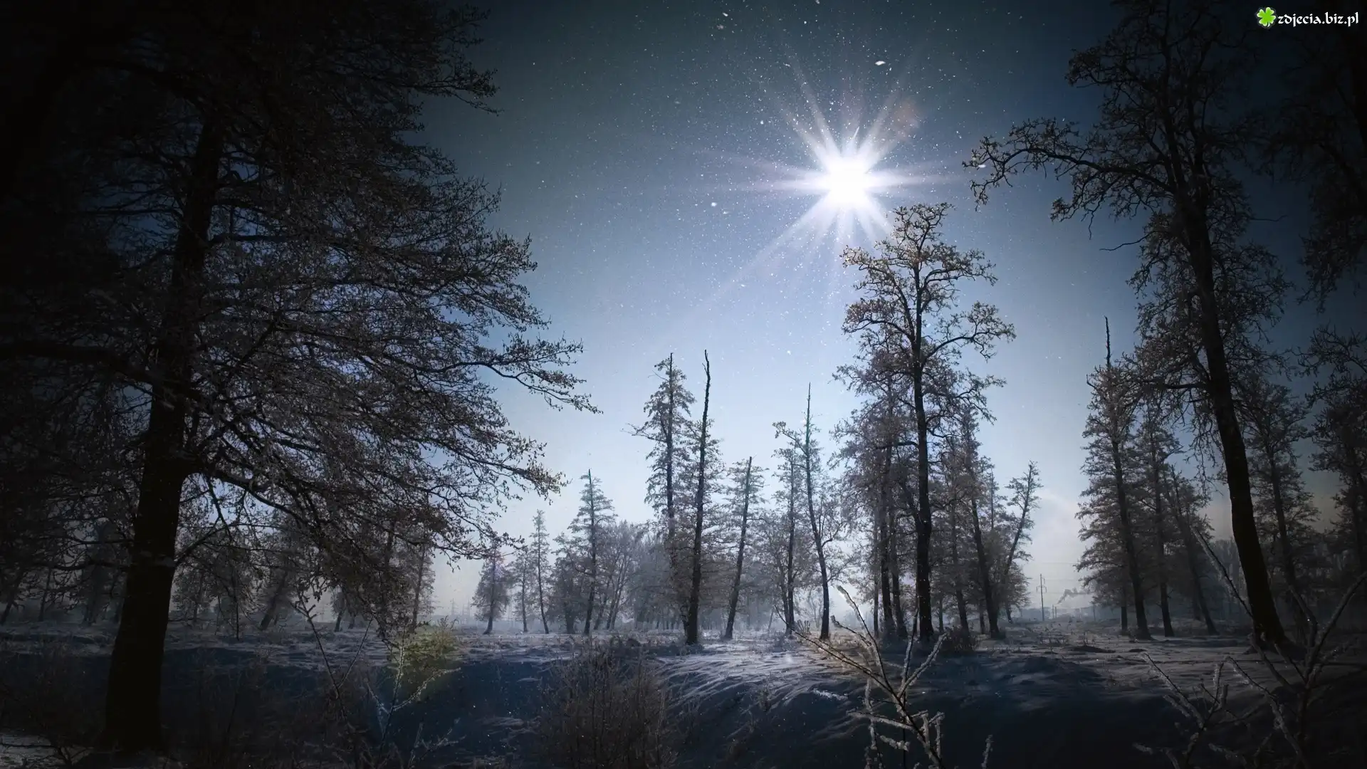 Zdjęcie Las, Drzewa, Niebo, Słońce