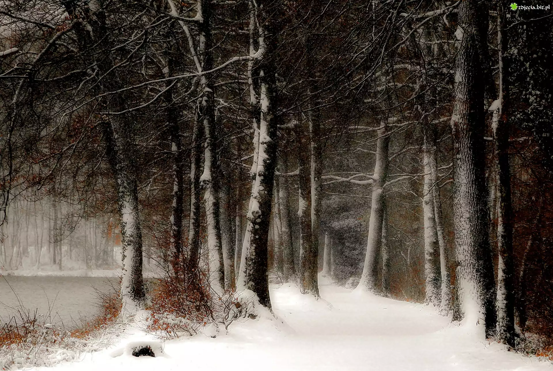 Zdjęcie Las, Drzewa, Śnieg, Zima