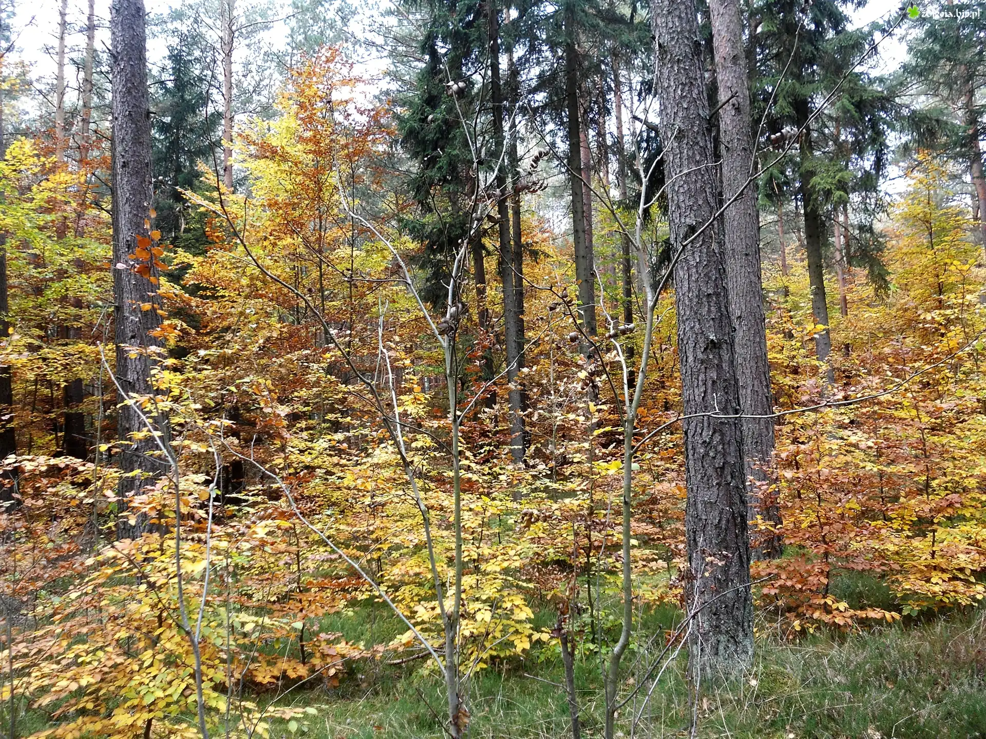 Zdjęcie Las, Jesień, Drzewa, Żółte, Liście