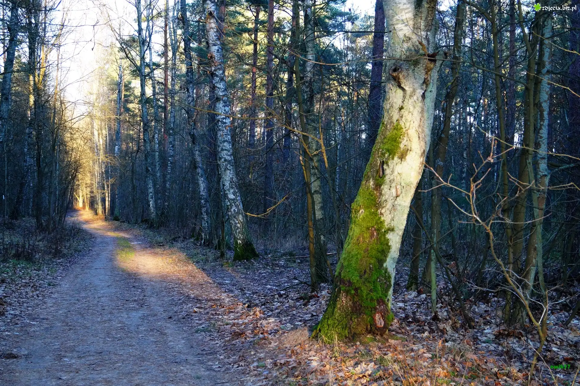 Zdjęcie Las, Droga, Światło, Omszałe, Drzewo