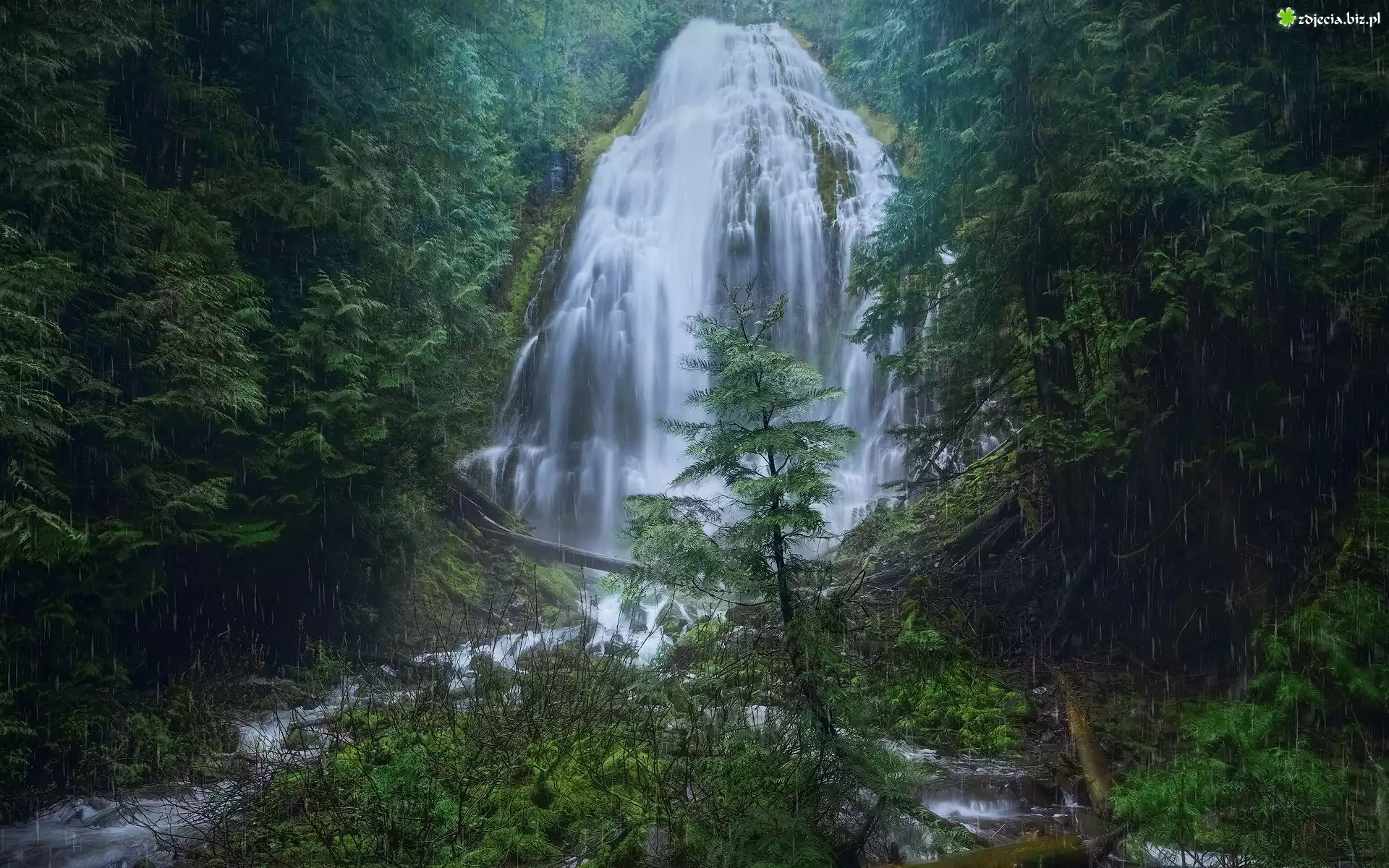 Zdjęcie Las, Drzewa, Deszcz, Wodospad, Fairy Falls, Oregon, Stany Zjednoczone