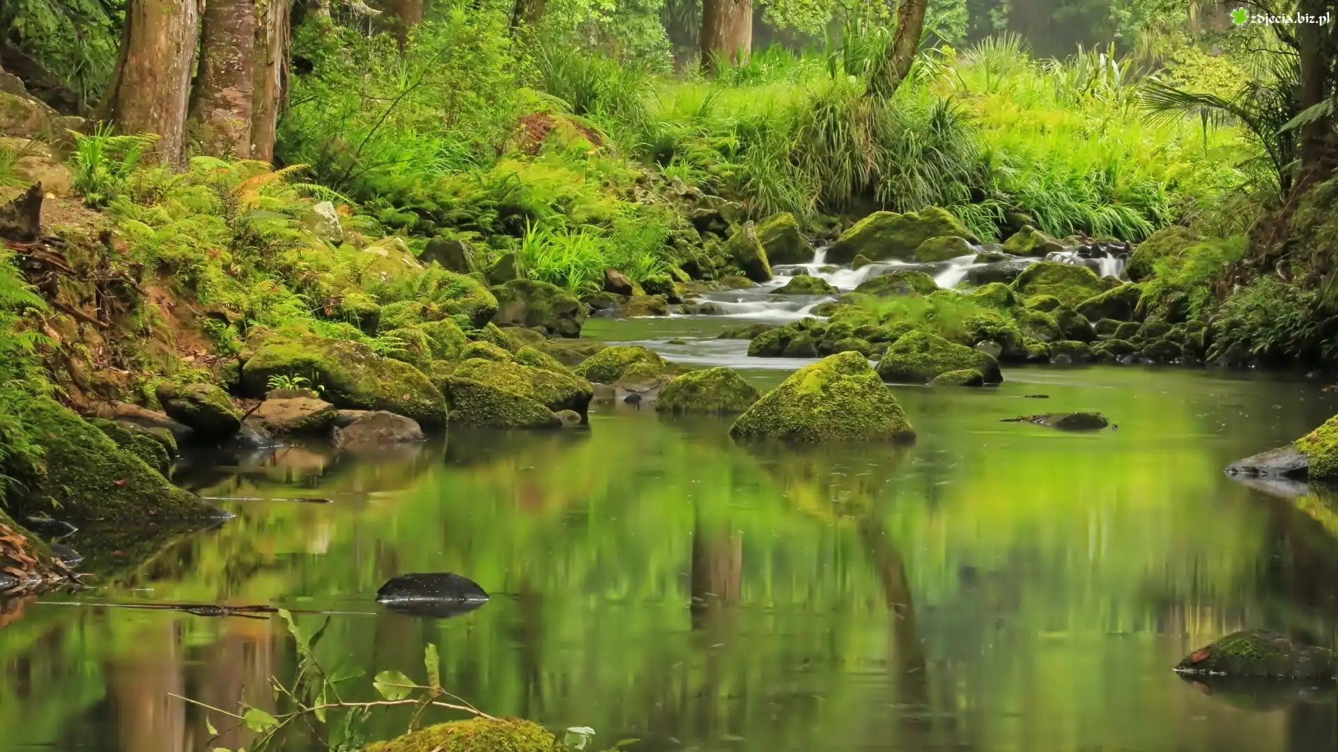 Zdjęcie Las, Drzewa, Potok, Kamienie