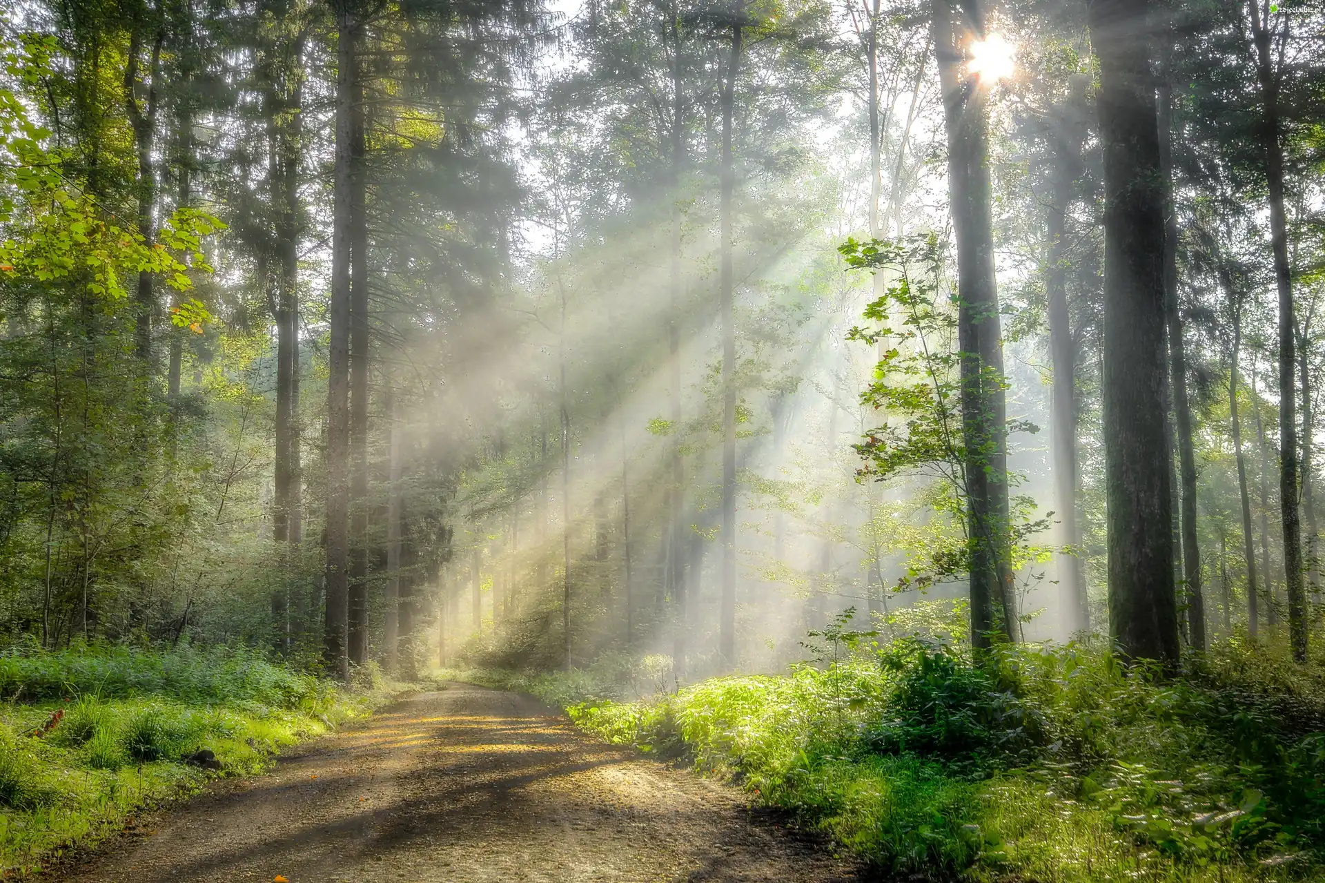 Zdjęcie Las, Droga, Promienie słońca