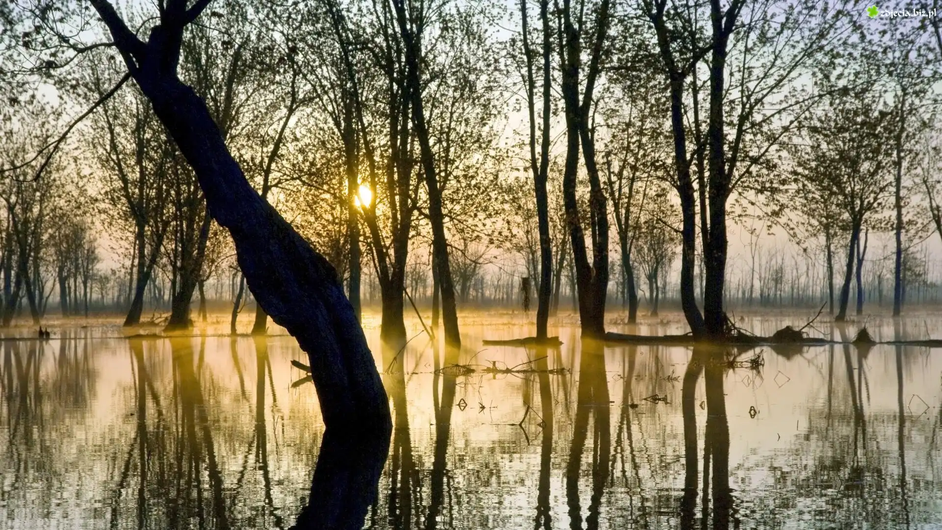 Zdjęcie Las, Rzeka, Drzewa, Promienie, Słońca