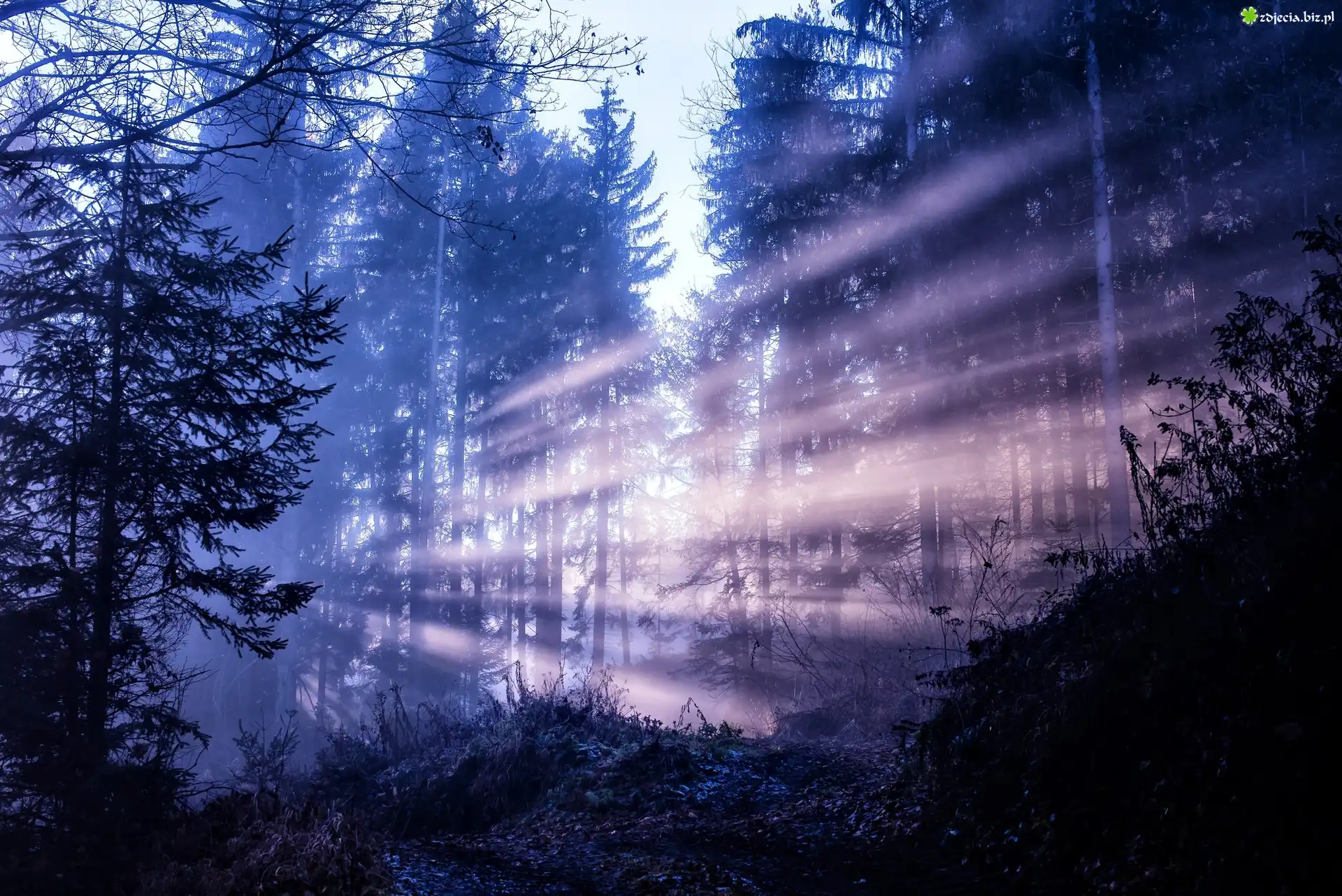 Zdjęcie Las, Świt, Wschód, Promienie Słońca