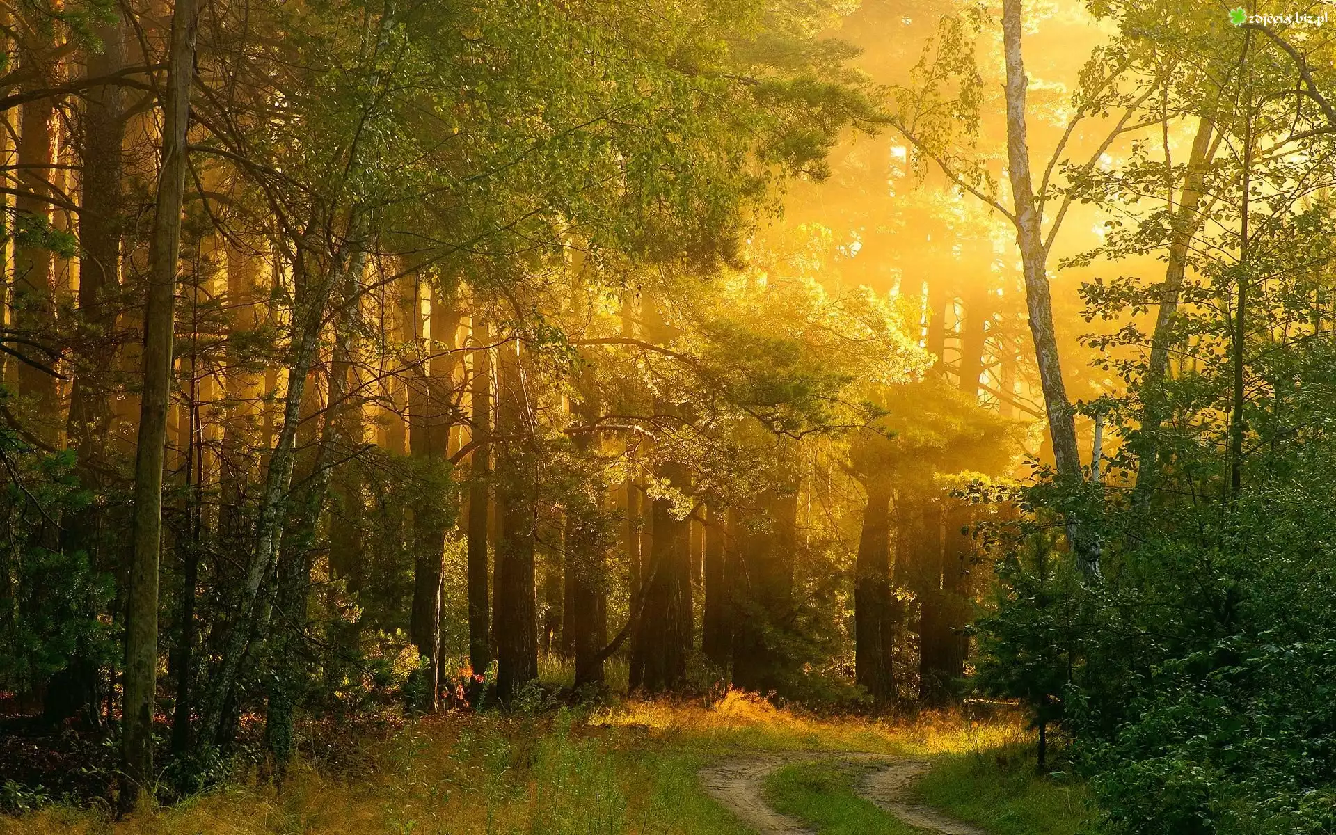 Zdjęcie Las, Droga, Przbijąjące, Światło