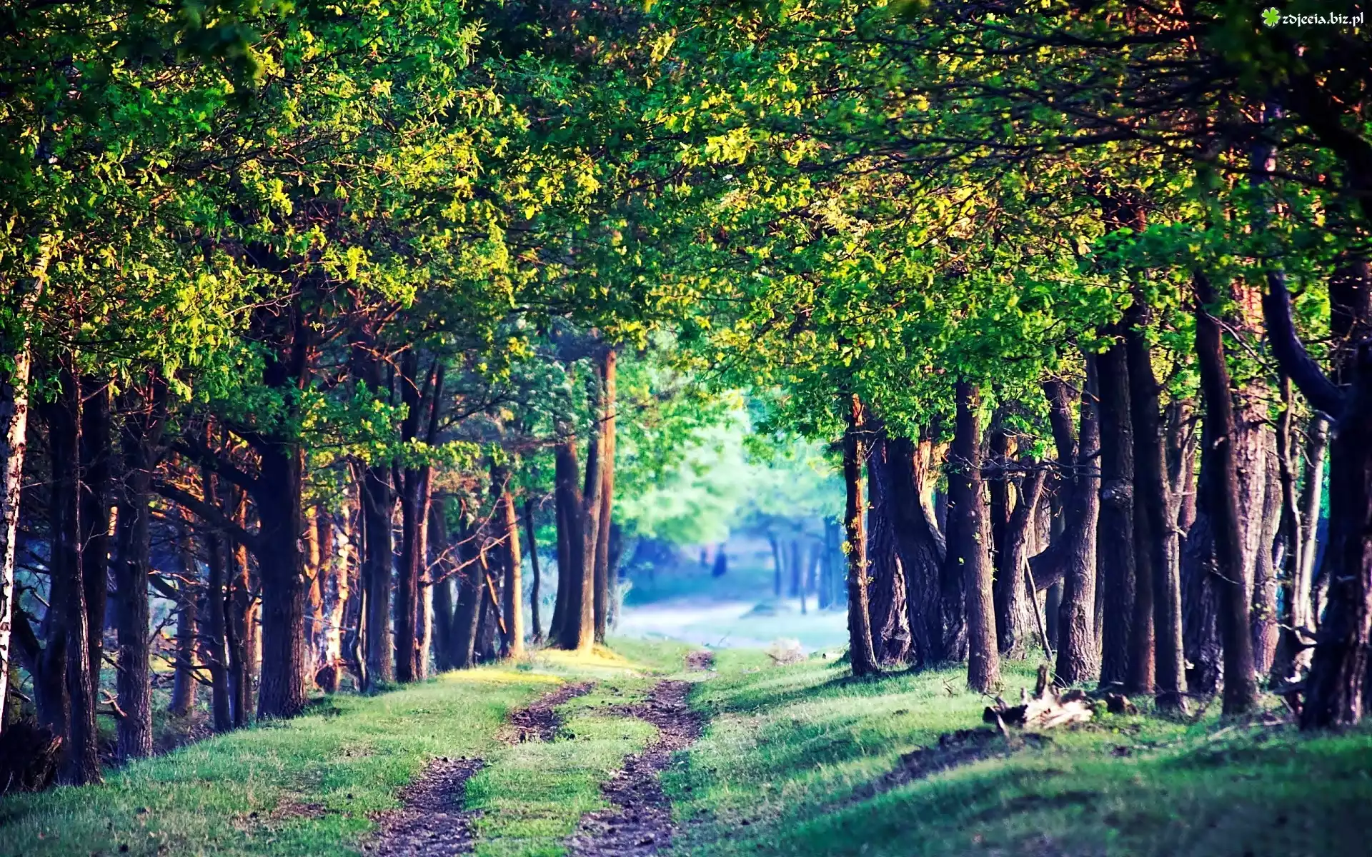 Zdjęcie Las, Droga, Przebijające, Światło