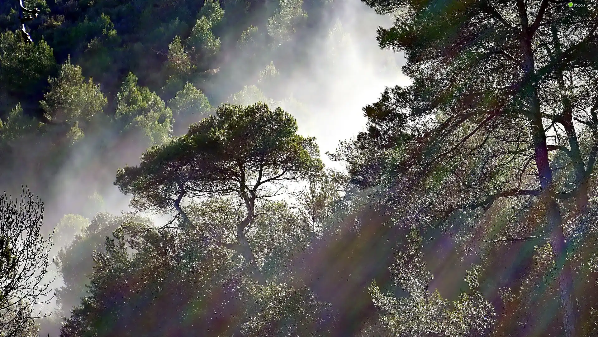 Zdjęcie Las, Mgła, Poranek, Przebijające Światło