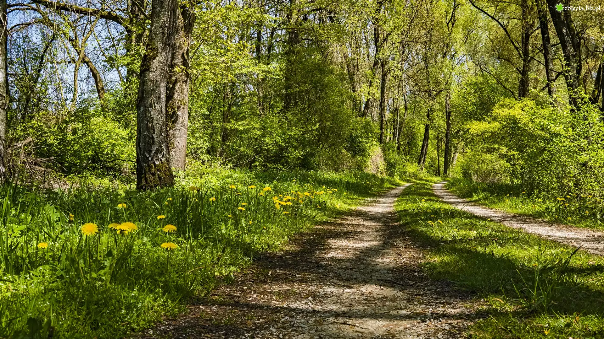 Zdjęcie Las, Drzewa, Ścieżki, Krzewy, Roślinność, Wiosna