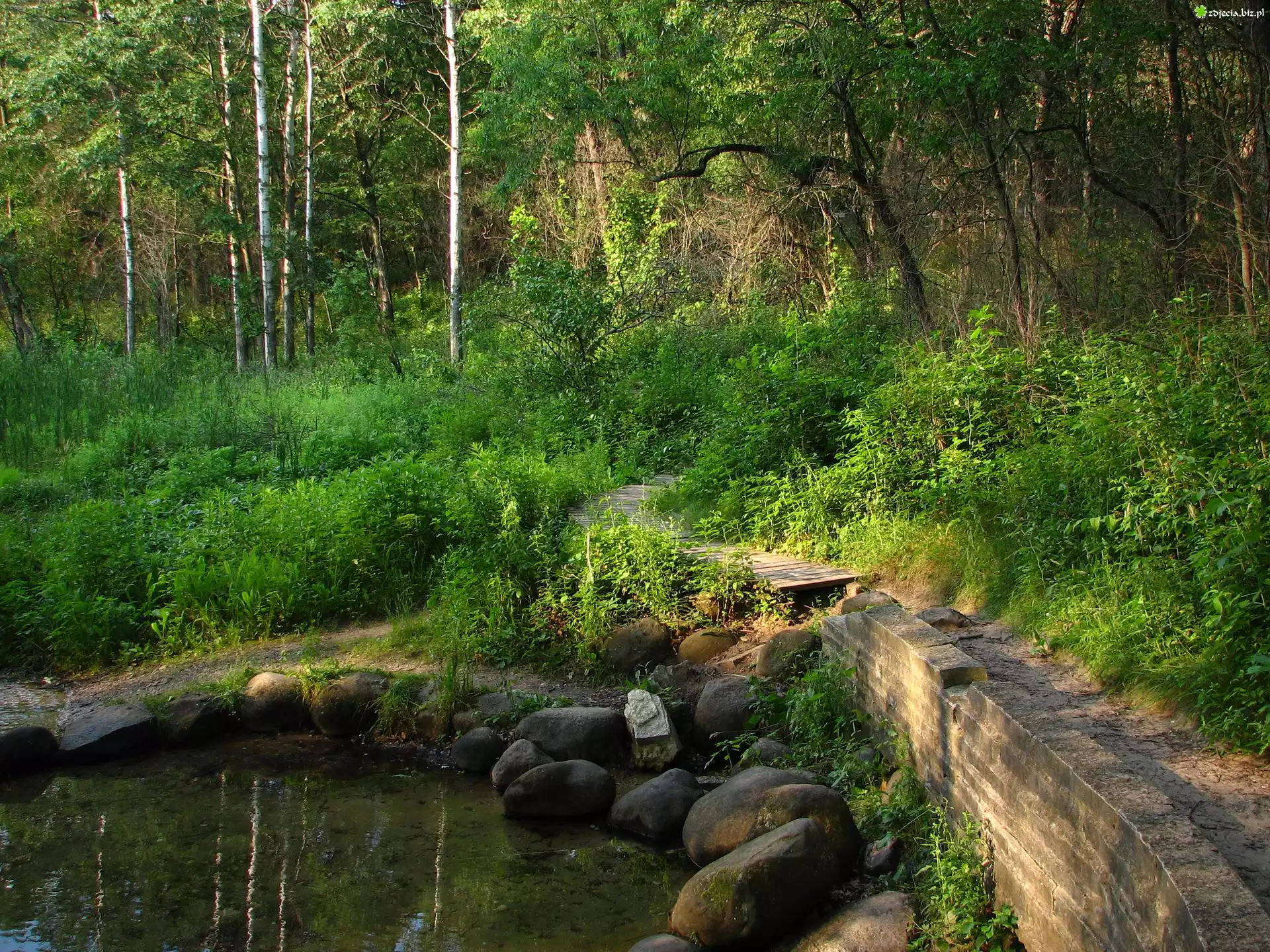 Zdjęcie Las, Dróżka, Rzeczka, Kamienie