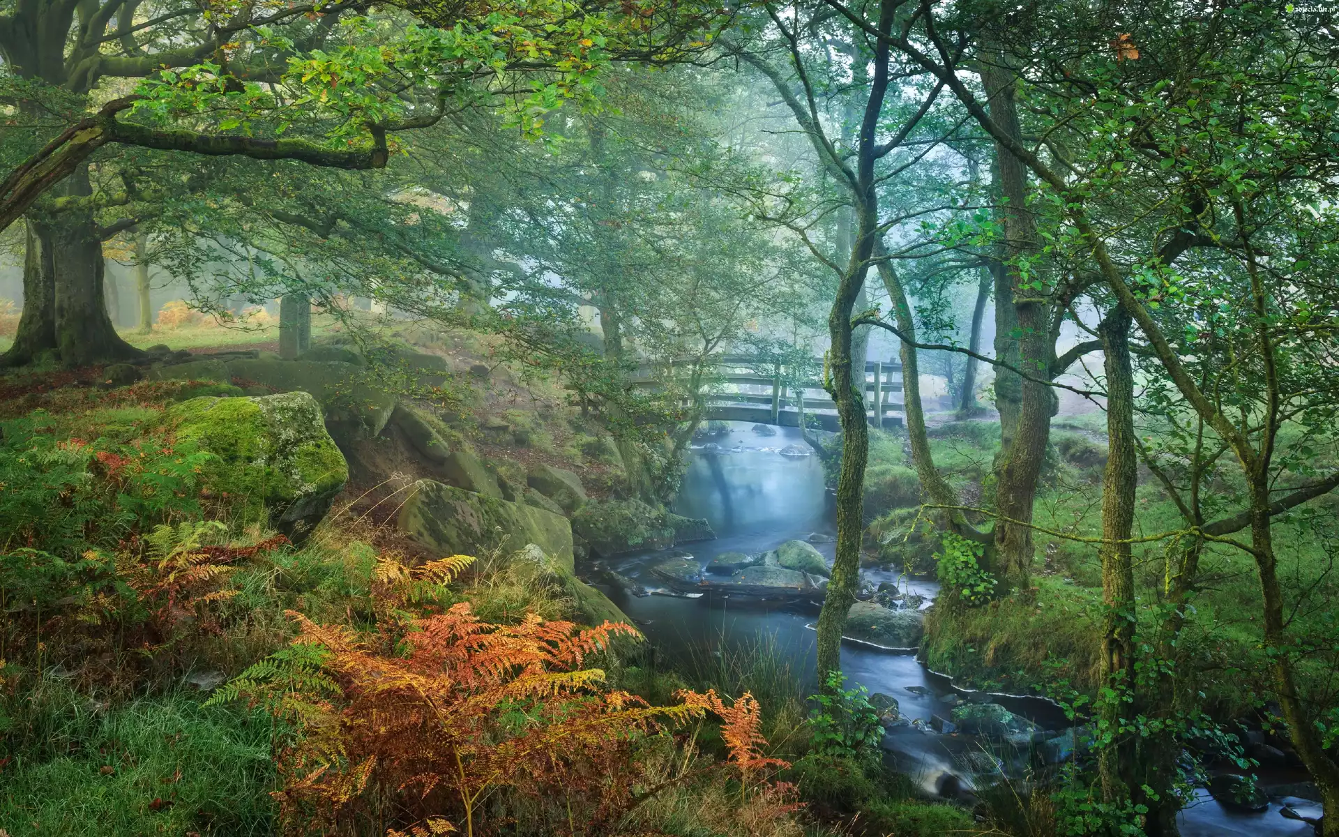 Zdjęcie Las, Drzewa, Rzeka, Mostek