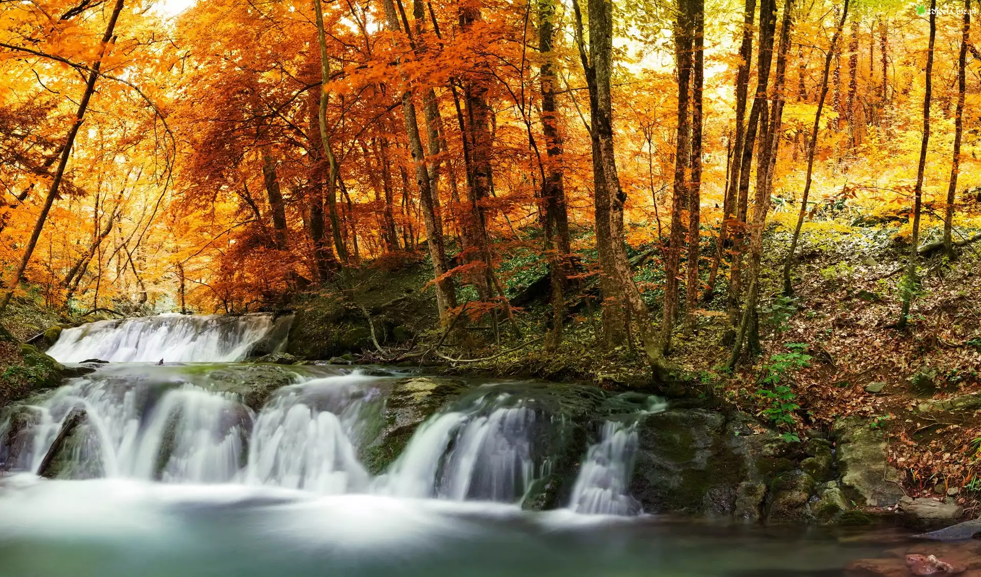 Zdjęcie Las, Jssień, Rzeka, Wodospad