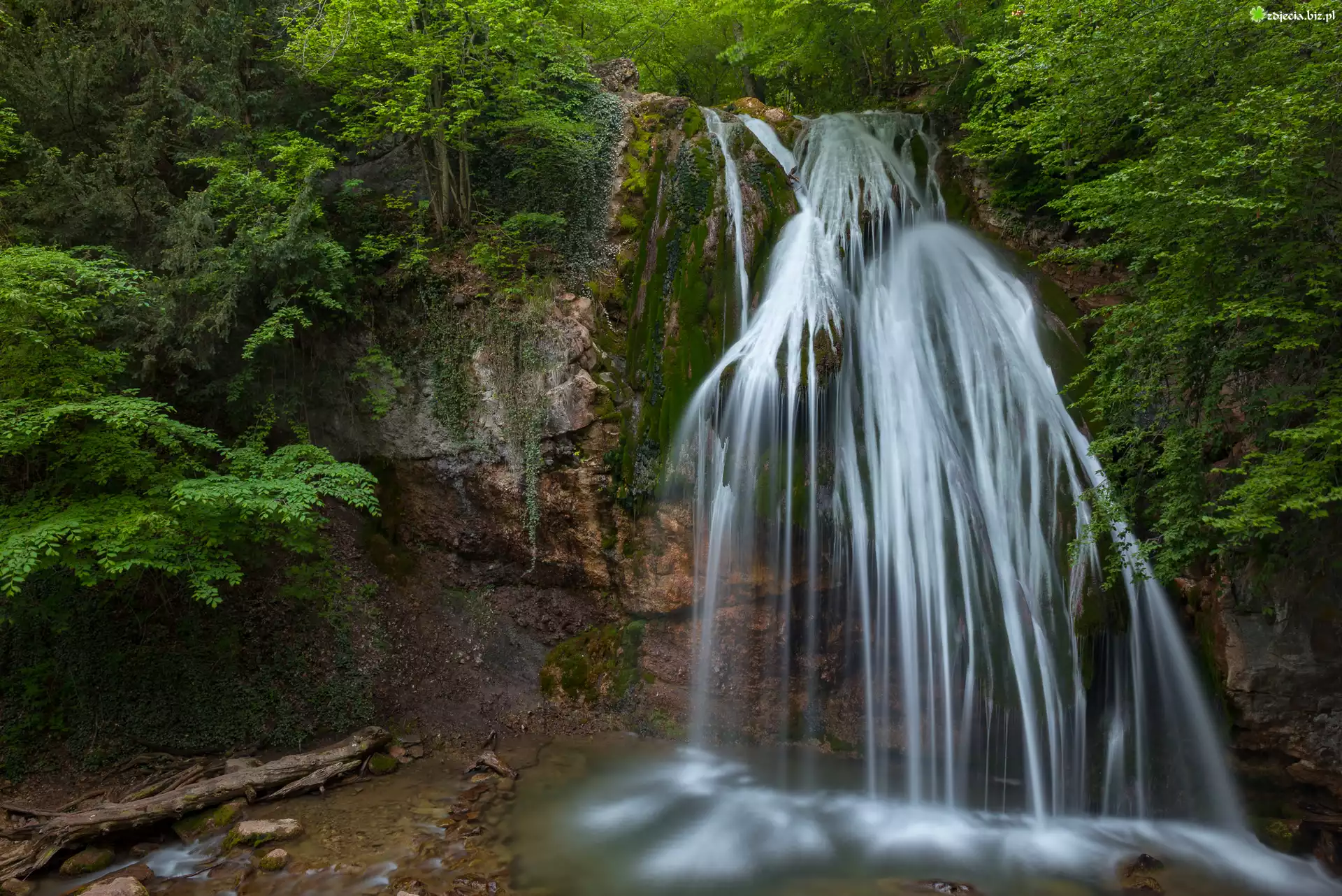 Zdjęcie, Las, Rzeka, Wodospad, Skały, Rośliny