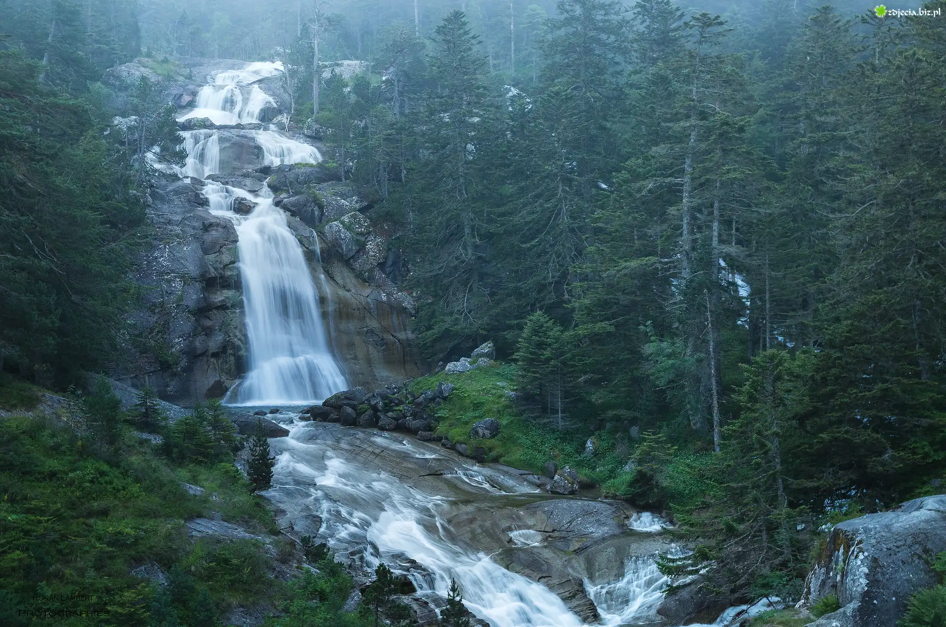 Zdjęcie Las, Wodospad, Skały, Rzeka
