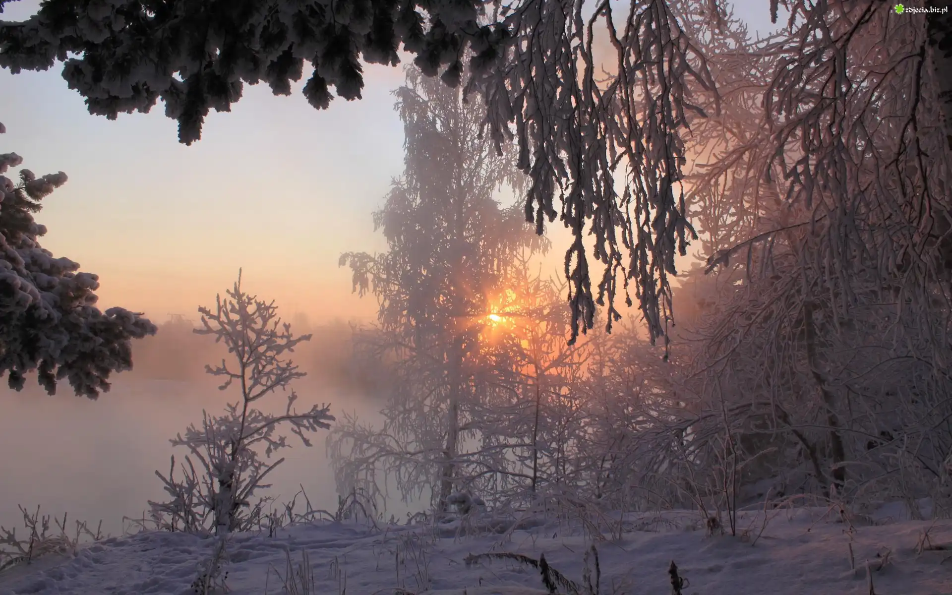 Zdjęcie Las, Pola, Promienie, Słońca, Zima